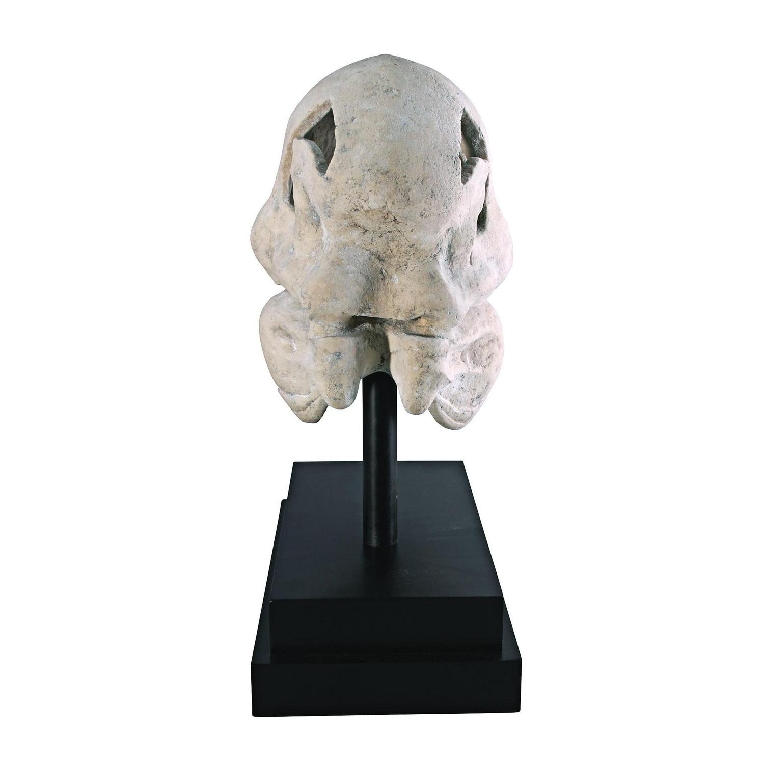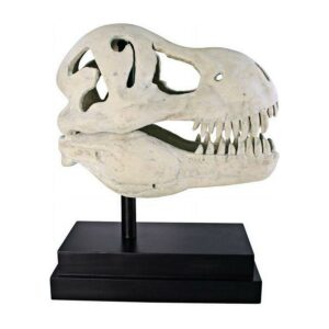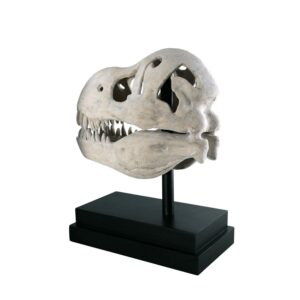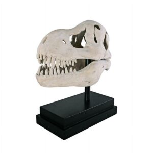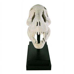 You don’t unearth this kind of archeological find every day! Although the Tyrannosaurus Rex became extinct more than 65 million years ago, we’re privileged to have a museum-quality replica statue artifact of the prehistoric predator s skull. Our specimen sculpture is cast in quality designer resin, finished to replicate ancient fossilized bone, and is displayed atop a fine museum mount. This large-scale, display-quality sculpture transforms any home bar, entertainment area or recreation room into something truly magnificent! 19½in Wx10in Dx22½in H. 26 lbs.