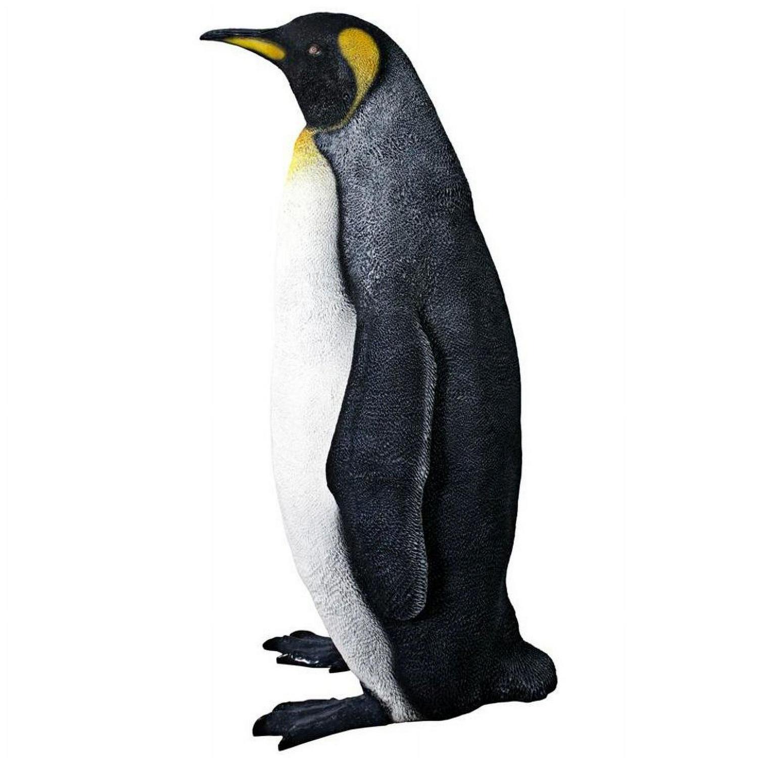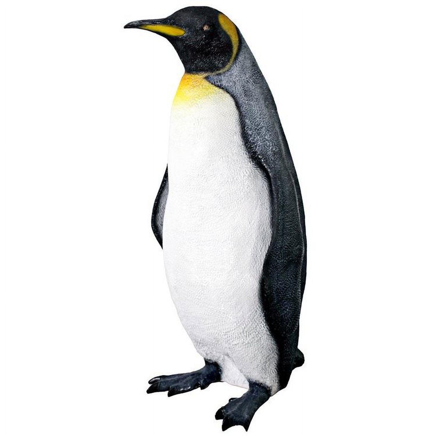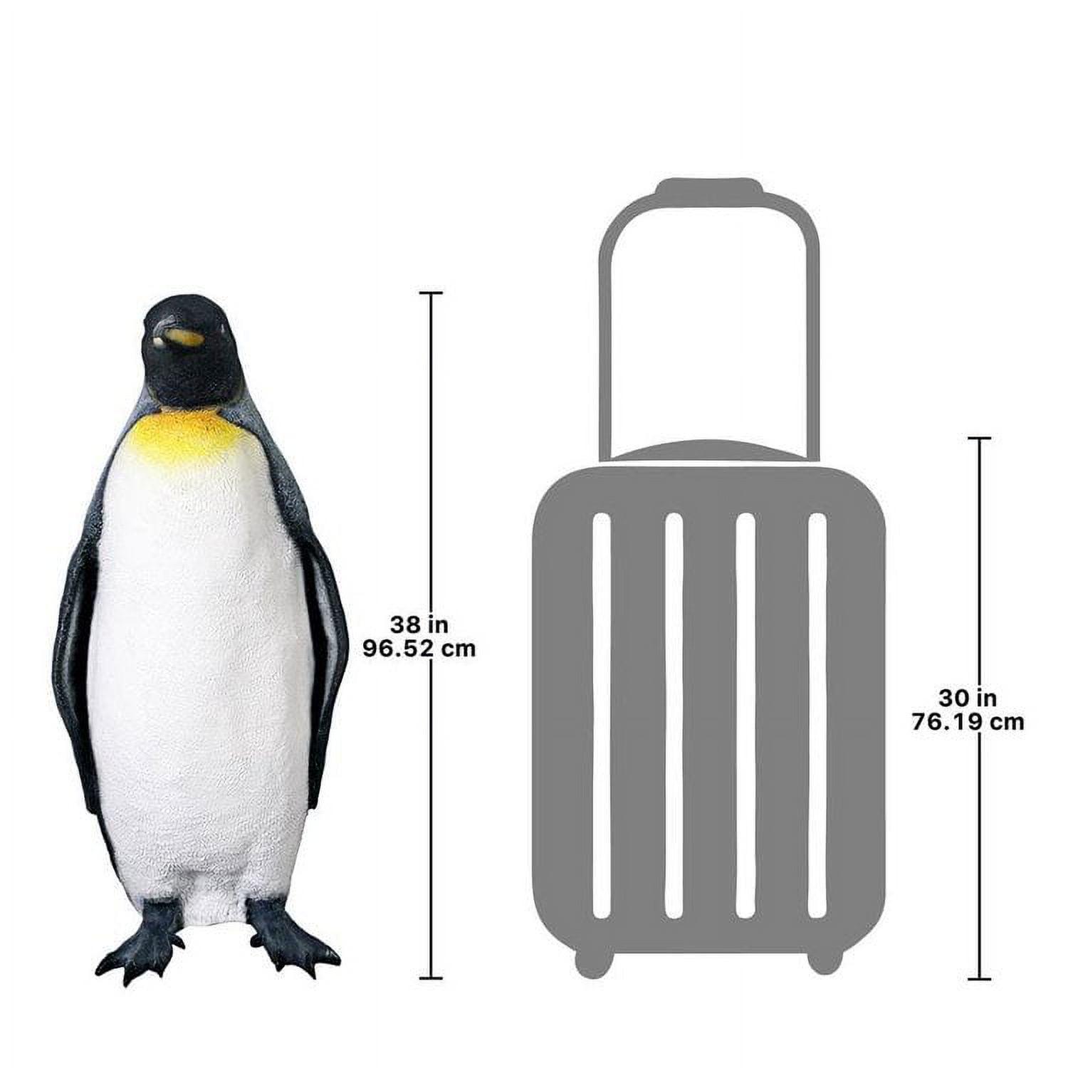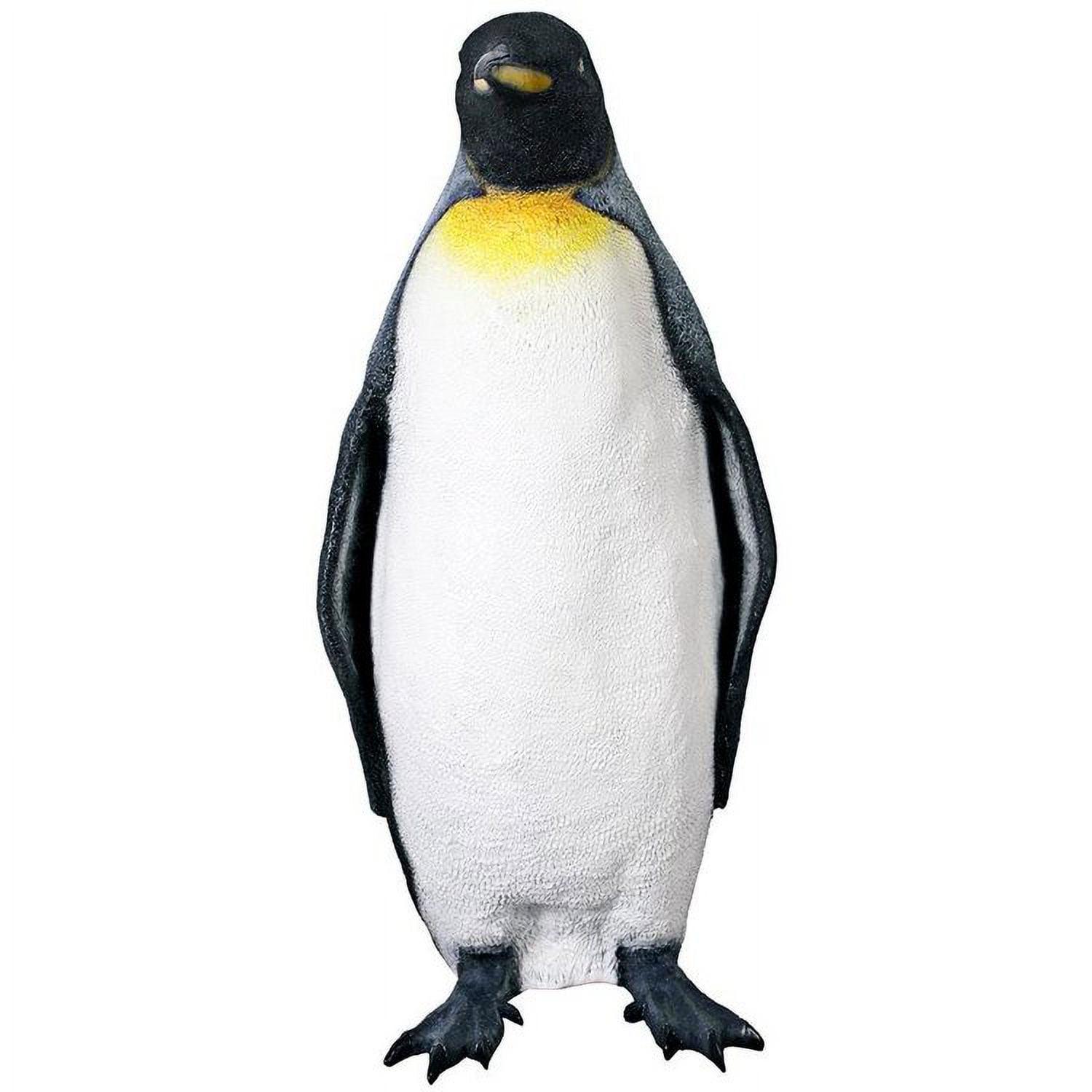 – Bring a bit of the frosty sub-Antarctic to your home or garden celebrations with this adorable Antarctic king penguin sculpture. At over three feet high, this friendly penguin statue will waddle into your heart while adorning your pool, garden or spa tub. Design Toscano has cast this life-size penguin figurine in quality fiberglass reinforced designer resin, and then hand-painted it one piece at a time with authenticity from plodding flippers to layered tuxedo feathers. This Design Toscano large-scale, display-quality penguin sculpture transforms any home, garden, restaurant or hotel into something truly magnificent! Whether displayed alone or together with its companion piece, the Rockhopper Penguin NE-100067, this delightful sculpture will be a stunning addition to your home or garden. 20″Wx17″Dx38″H. 18 lb.