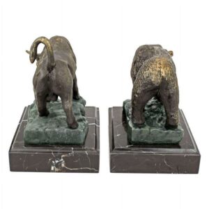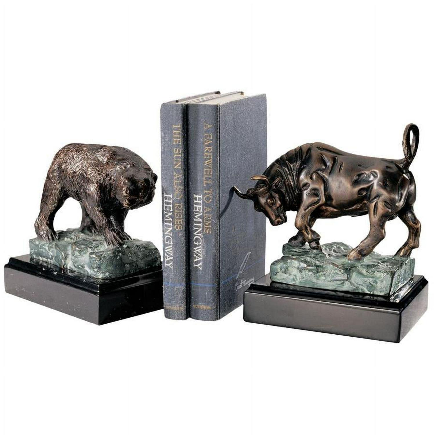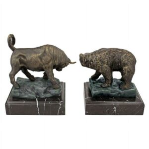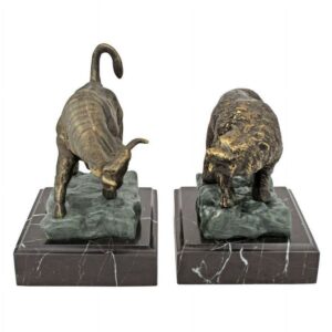 – This handsome set is an authentic iron foundry casting, replicating each fierce detail from the surly snarl of the Bear to the lunging horns of the Bull. You’ll be proud to display these sculptures on their own or as executive bookends. Give yourself or any investor on your gift list these potent reminders of market forces. Each work is mounted on a solid black marble base. Each approx. 6.5″Wx5.5″Dx8.5″H. 10 lbs.