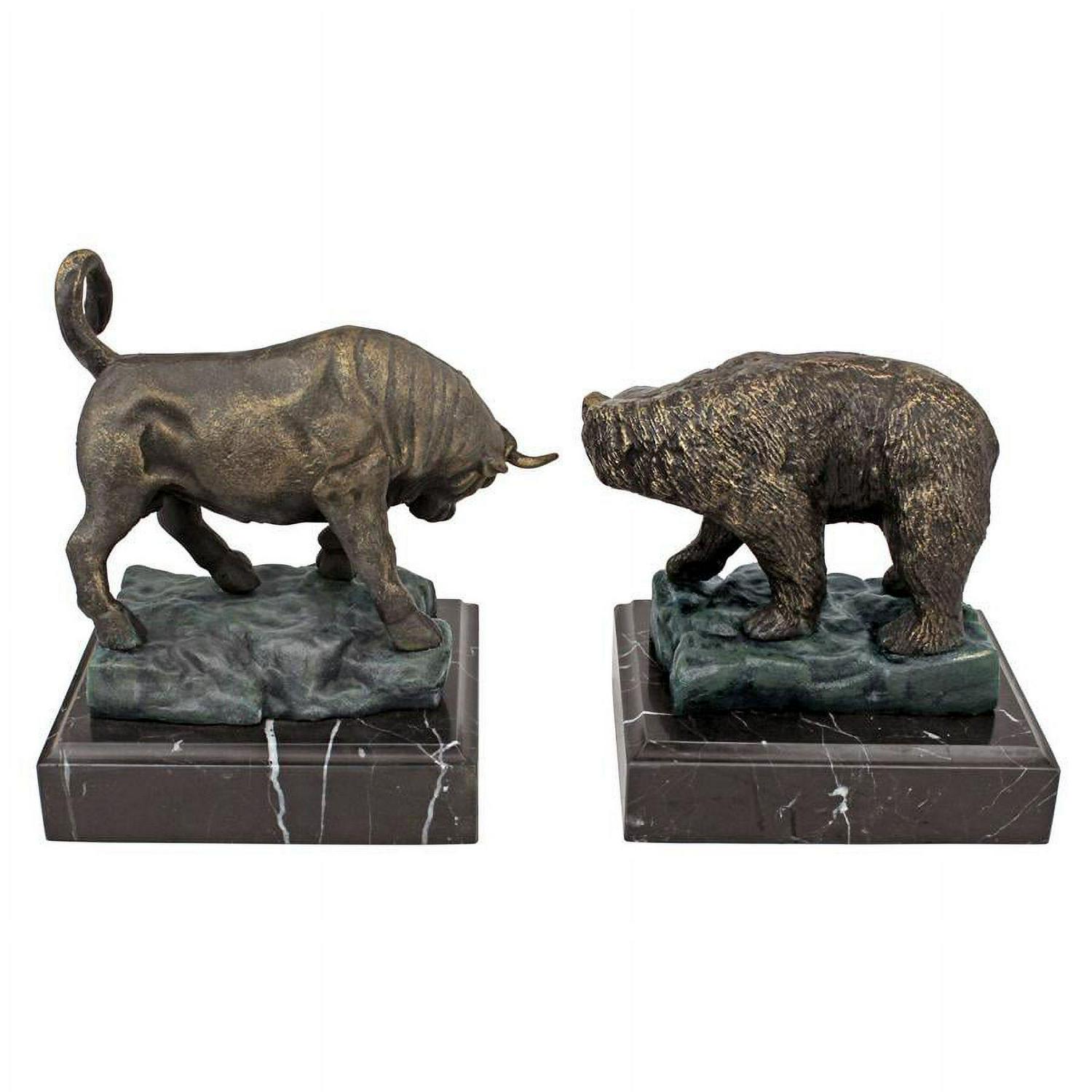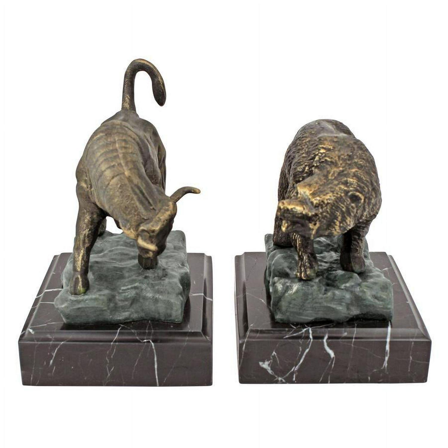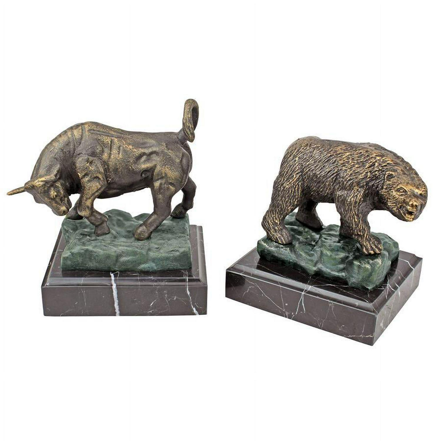 Quality foundry cast iron collectible crafted using age old techniques Each piece is individually hand-finished in antique bronze Marble base Exclusive to the Design Toscano brand and perfect for your home or garden This handsome set is an authentic iron foundry casting, replicating each fierce detail from the surly snarl of the Bear to the lunging horns of the Bull. You’ll be proud to display these sculptures on their own or as executive bookends. Give yourself or any investor on your gift list these potent reminders of market forces. Each work is mounted on a solid black marble base.
