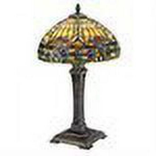 The warmly illuminating amber glow of six ribbed domes are accented with 30 cabochons in this amazingly constructed lamp inspired by the Beaux Arts period. 498 individually hand-cut pieces of vibrant, authentic art glass shine in our almost two-foot-tall, turn-of-the-century era work set atop a quality designer resin base finished in dark faux bronze. Simple Assembly Required. Accepts your 40-watt bulb; switch on cord.12″dia.x19″H. 8 lbs.