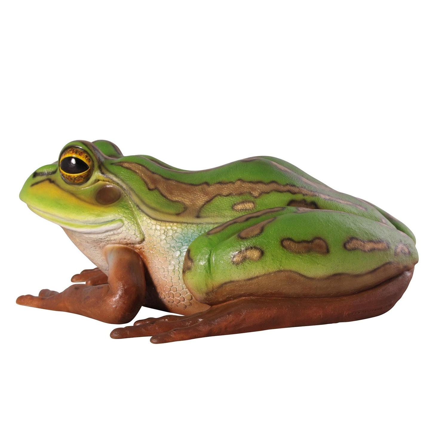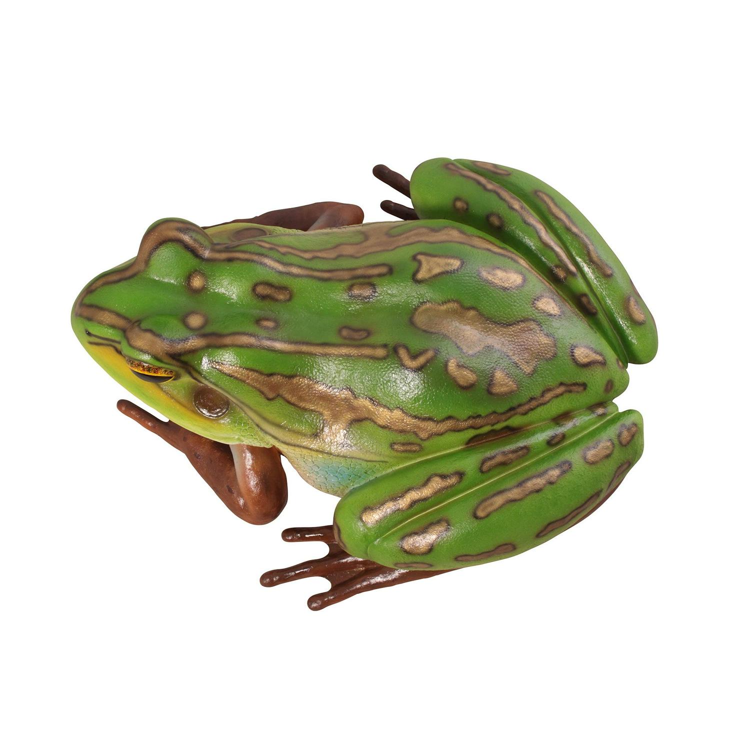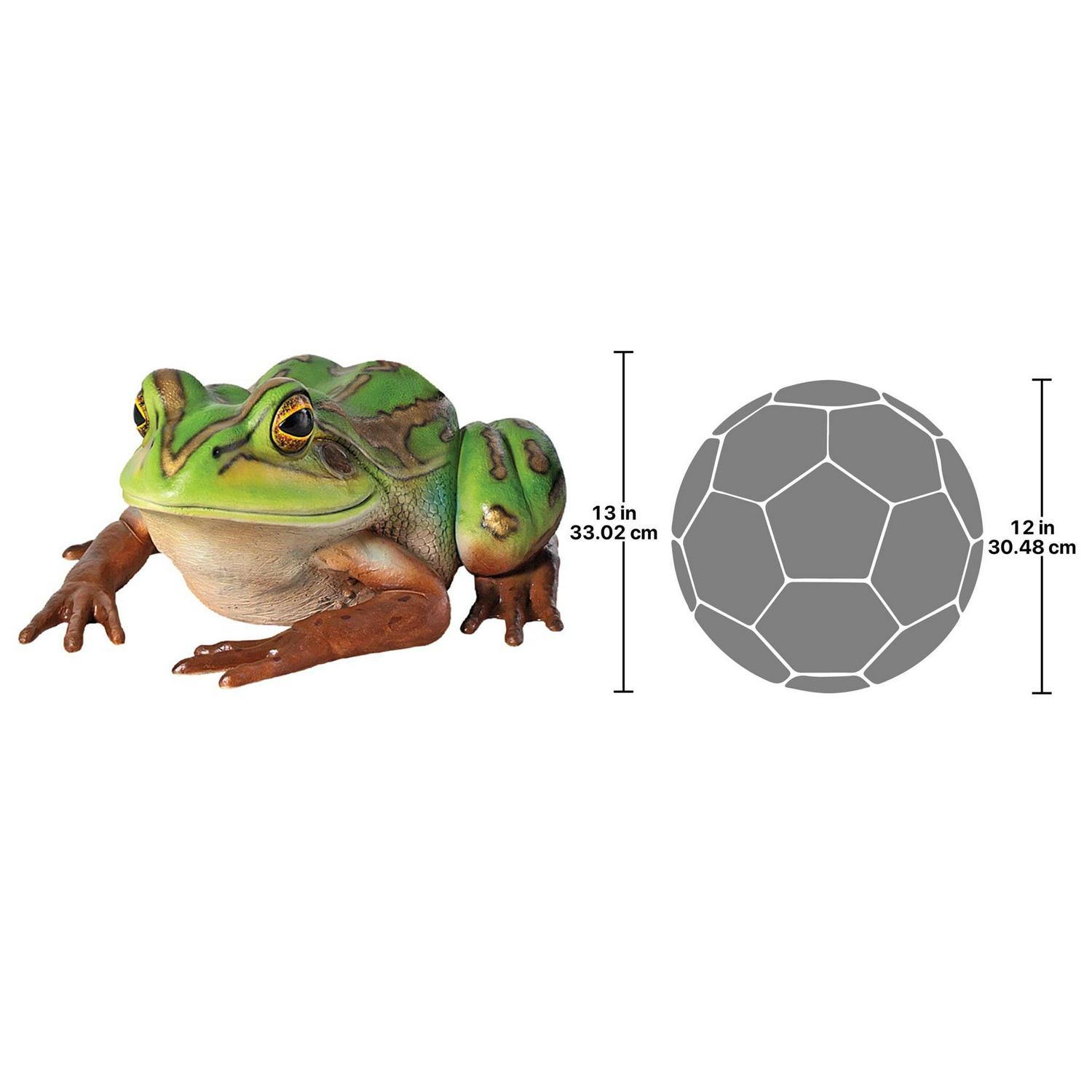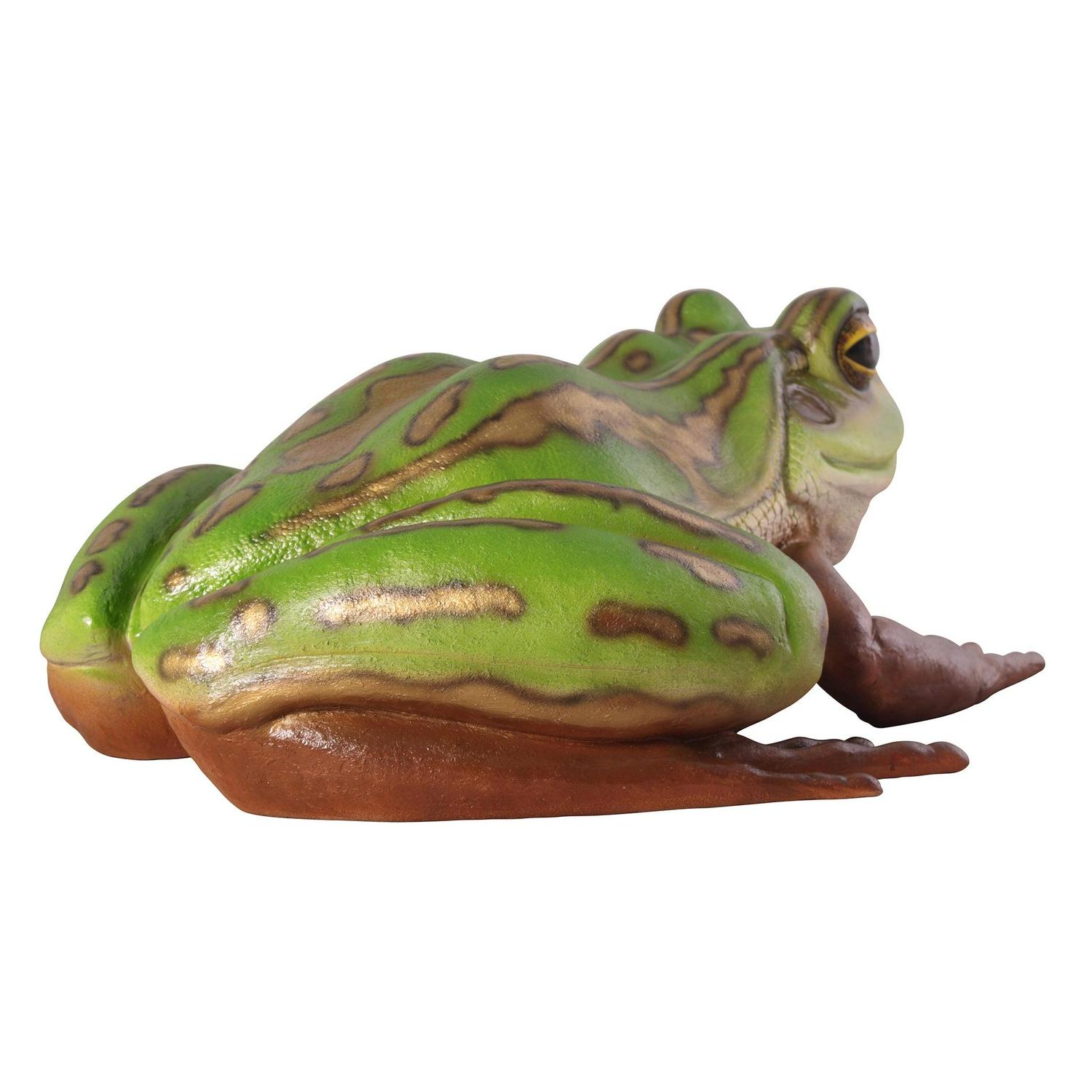 Add playful ambiance to your garden or pond with this delightful, giant garden frog statue. Even if you can’t hear him croak, the Pine Barrens giant tree frog sculpture is large enough at nearly three feet long to spot from a distance! Considered one of the most striking and beautiful frogs in the United States, our replica is cast in quality designer resin reinforced with fiberglass for strength to capture details including his brightly bulging eyes. Hand-painted in garden-bright hues, our Design Toscano exclusive toad statue is an easy garden and pond focal point. This display-quality frog statue transforms any home, garden, restaurant or hotel into something truly brilliant! Another quality amphibian statue from Toscano. Great for photo ops!