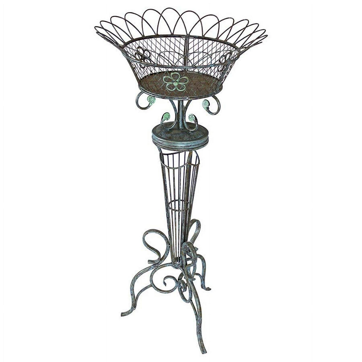 – Our unabashedly Victorian planter is a charming sculptural accent that no Victorian sunroom should be without! Crafted of sturdy metalwork to replicate antique 1800’s basketweave rattan planters, our Design Toscano exclusive rises on scrolled tripod legs toward a serpentine hourglass base and a floral embellished basket. Perfect in pairs flanking a doorway or alongside your favorite work of furniture art, our faux emerald verdigris-bronze finished accent also adds beautiful ornamentation when embellished with ferns or greenery. Shown with our Greek Goddess Harmonia Garden Statue, sold seperately: AL-56500. 17″dia.x37.5″H. 8 lbs.