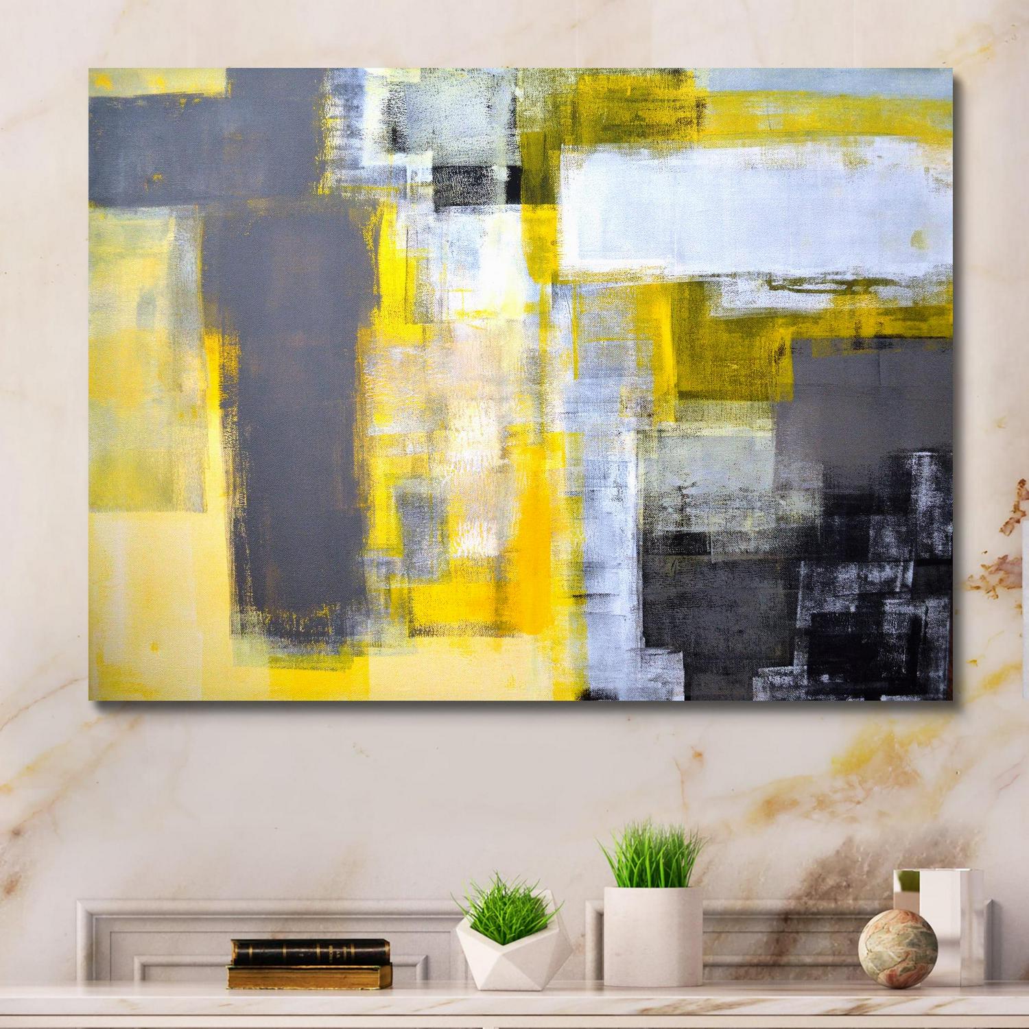 Designart ‘Grey and Yellow Blur Abstract ‘ Abstract Canvas Art Print