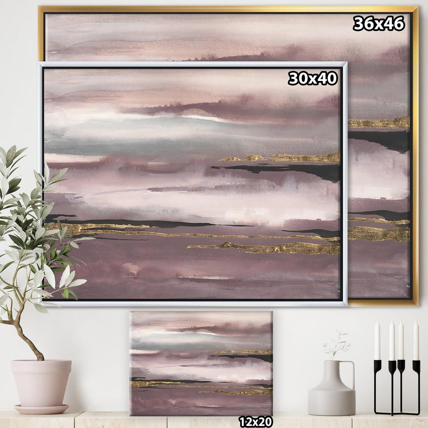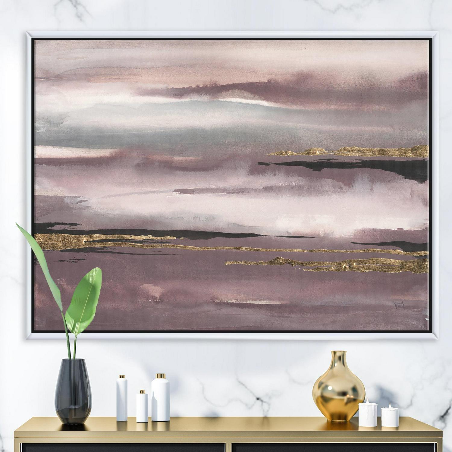 Designart ‘ Purple Glam Storm IV ‘ Glam and Shabby Chic Framed Canvas