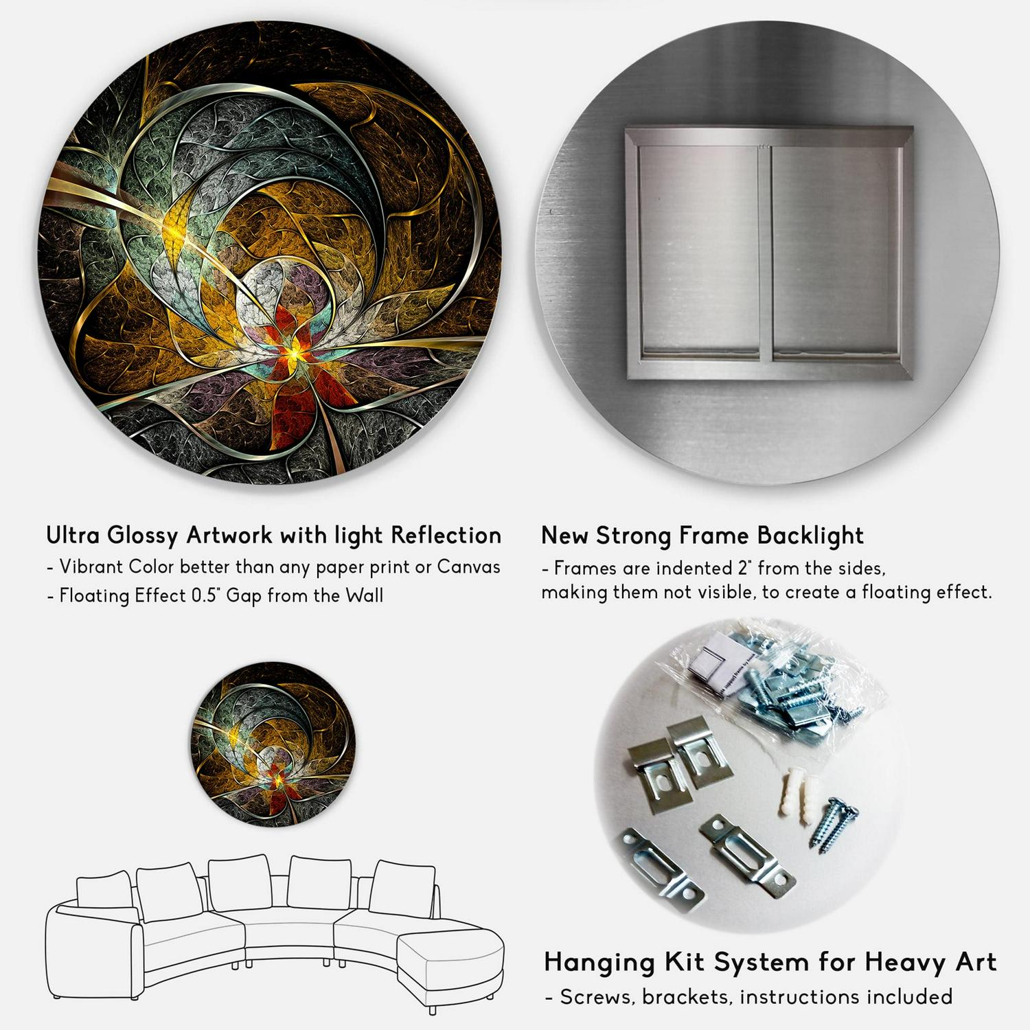 – 1-inch mounting frame gives the illusion of artwork floating on the wall