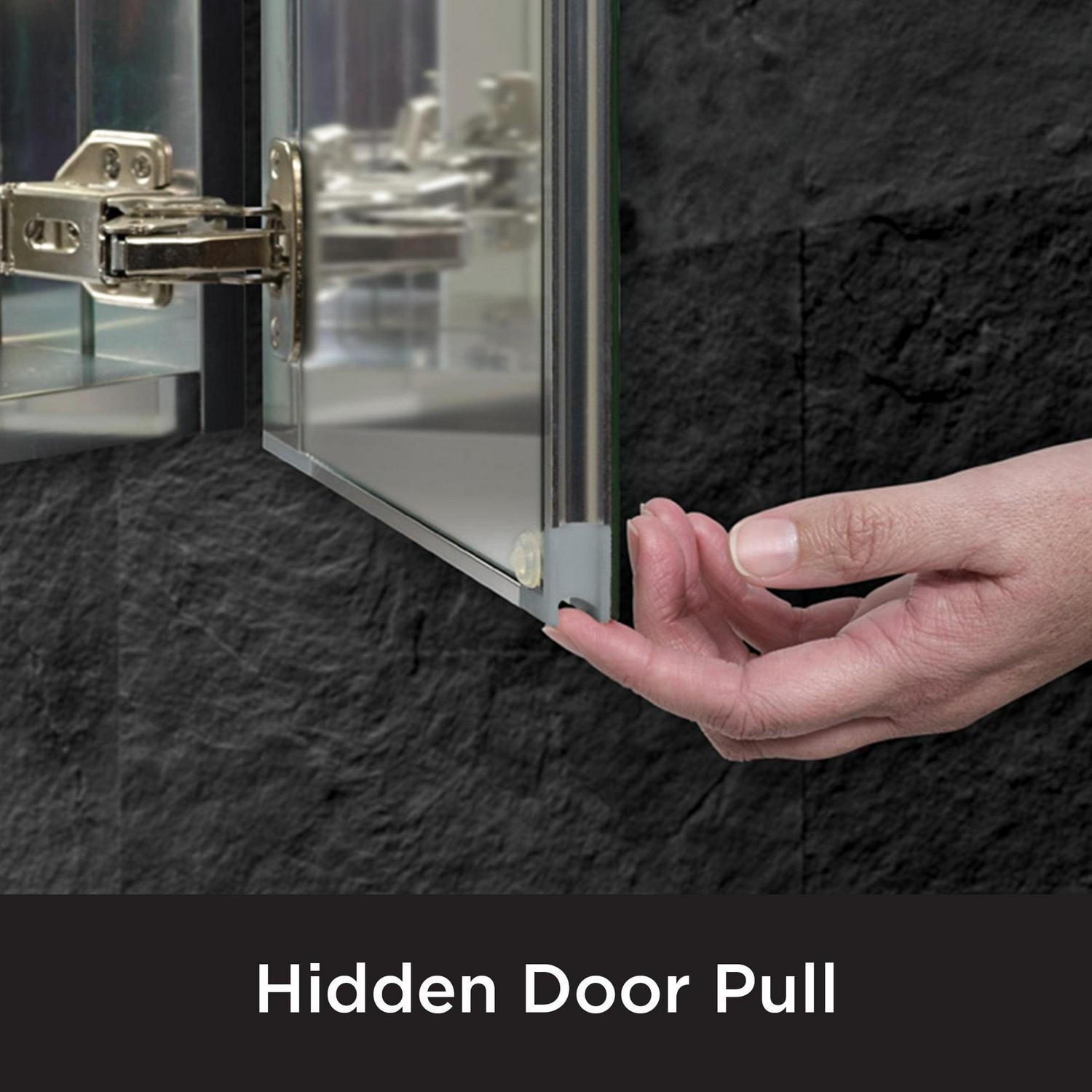 – EASY TO OPEN AND CLOSE WITH NO FINGERPRINTS: Hidden door pulls make it easy to open and close door with no fingerprint smudges on cabinet mirror