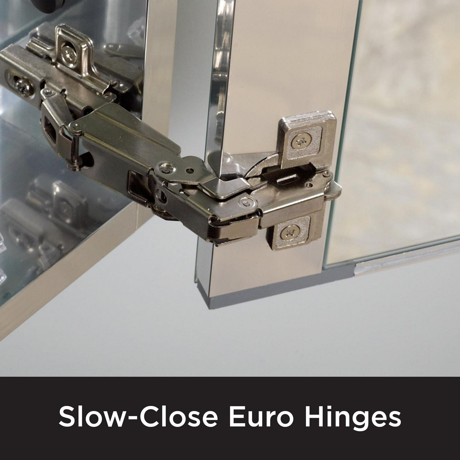 – REVERSIBLE 20 IN. x 26 IN. MIRROR DOOR FEATURES 170 DEGREE-OPENING SLOW-CLOSE EURO HINGES: Choose which side the door opens during installation, and get a wide-opening and slow-closing door