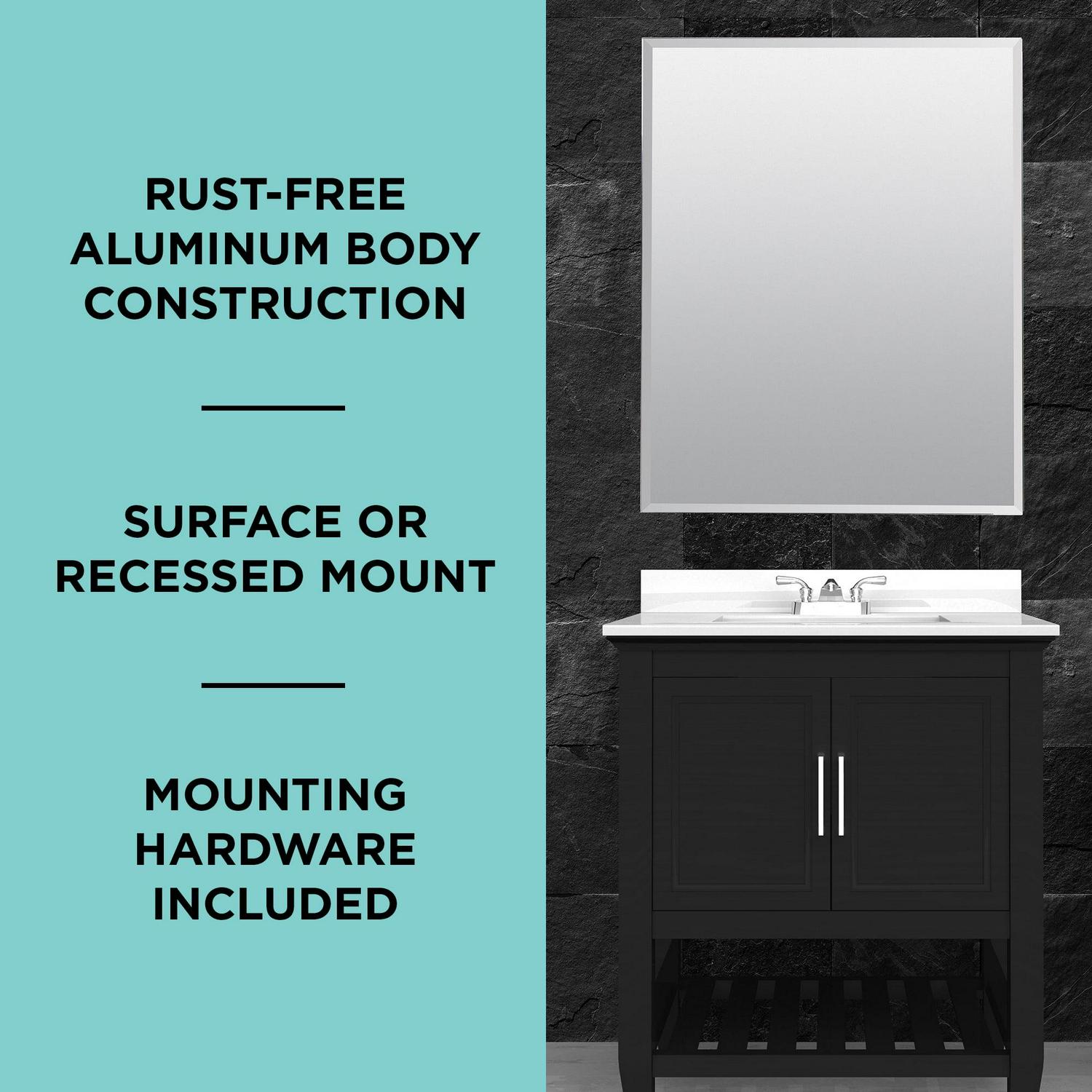 Designer Series by Zenith Aluminum Beveled Mirror Medicine Cabinet, 24 x 30 in., Frameless