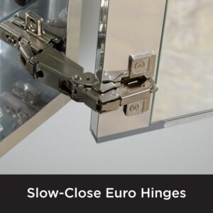 – REVERSIBLE 24 IN. x 30 IN. MIRROR DOOR FEATURES 170 DEGREE-OPENING SLOW-CLOSE EURO HINGES: Choose which side the door opens during installation, and get a wide-opening and slow-closing door