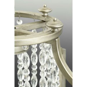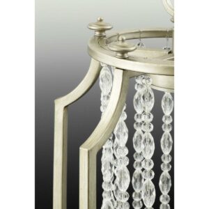 The Desiree collection five-light chandelier features luxury materials and details reminiscent of Hollywood’s “Golden Era.” A Silver Ridge finish and clear crystal strands cascade in a waterfall effect to convey the glitz and glamour from an iconic time that is making a modern comeback.