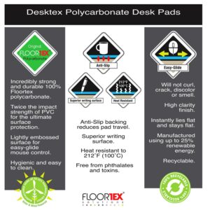 – Helps protect expensive desk surfaces; from scratches, scuffs, spillage and heat. Polycarbonate is non-toxic, lays perfectly flat instantly, and will not crack, dent, curl, discolour or smell