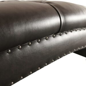 – Highresiliency foam wrapped in Dacron fill Bonded leather upholstery Brass nail head trim Buttontufted seat Corned braced and blocked for support Armless Knock Down Assembly Seat Cushion Height: 19.7 inches Seat Depth: 49.6 inches Leg Height: 5.12 inches