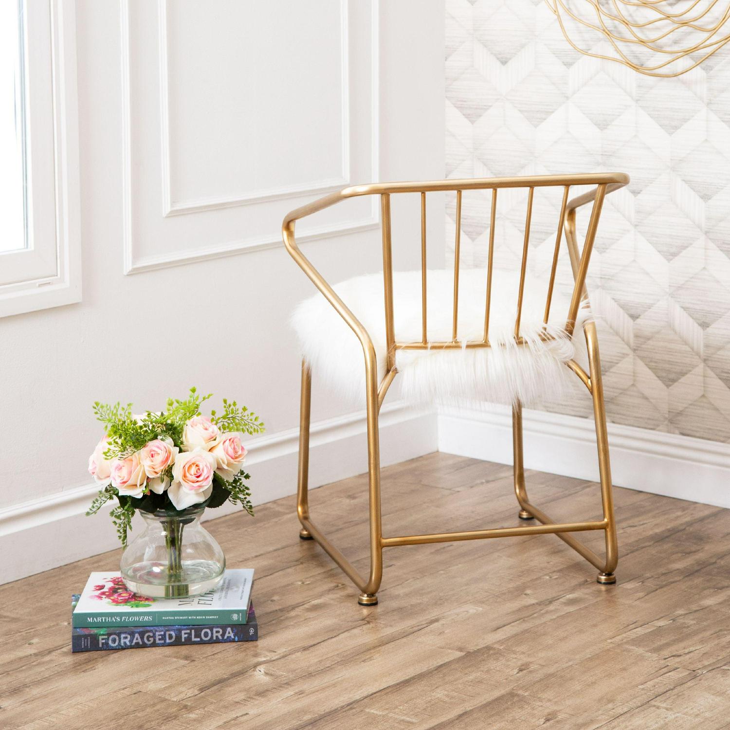 Devon & Claire Kimberly Gold And Faux Fur Dining Chair