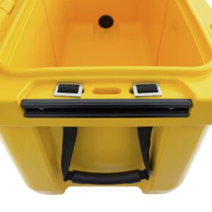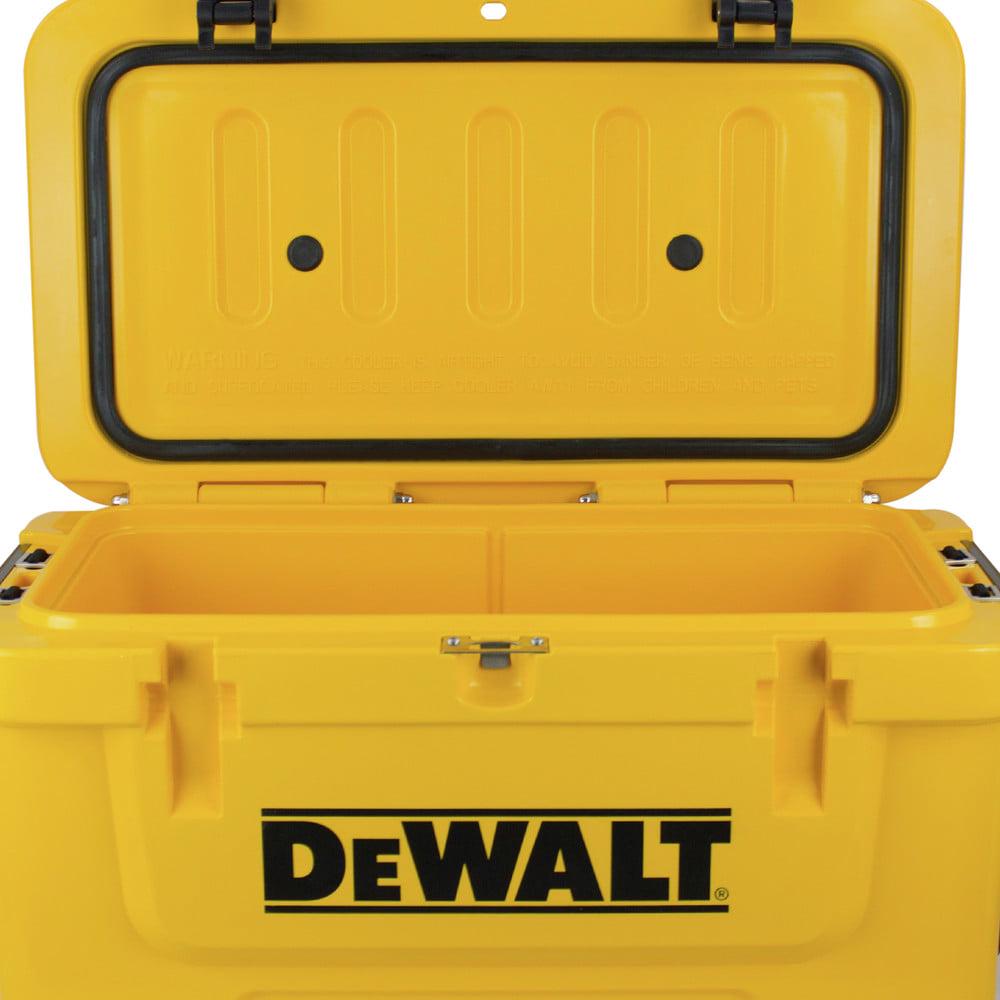 DEWALT 45QT Roto Mold Cooler Powered by Ice and Built to Last The DEWALT 45 Quart Cooler is the all-in-one tool for keeping your food and drinks ice cold on the jobsite. This cooler is ideal for taking to the construction zone, backyard barbeques, campgrounds, sporting events or wherever life may take you. The T.O.U.G.H. Roto-mold design is nearly indestructible and will stand up to the roughest treatment. The strong exterior construction reduces the amount of stress typically put on a cooler during everyday use. The reinforced pressure-injected insulation provides superior ice retention and ensures Temperature Optimization Under Great Heat. Keep your drinks and food colder longer with the DEWALT 45 Quart Cooler.