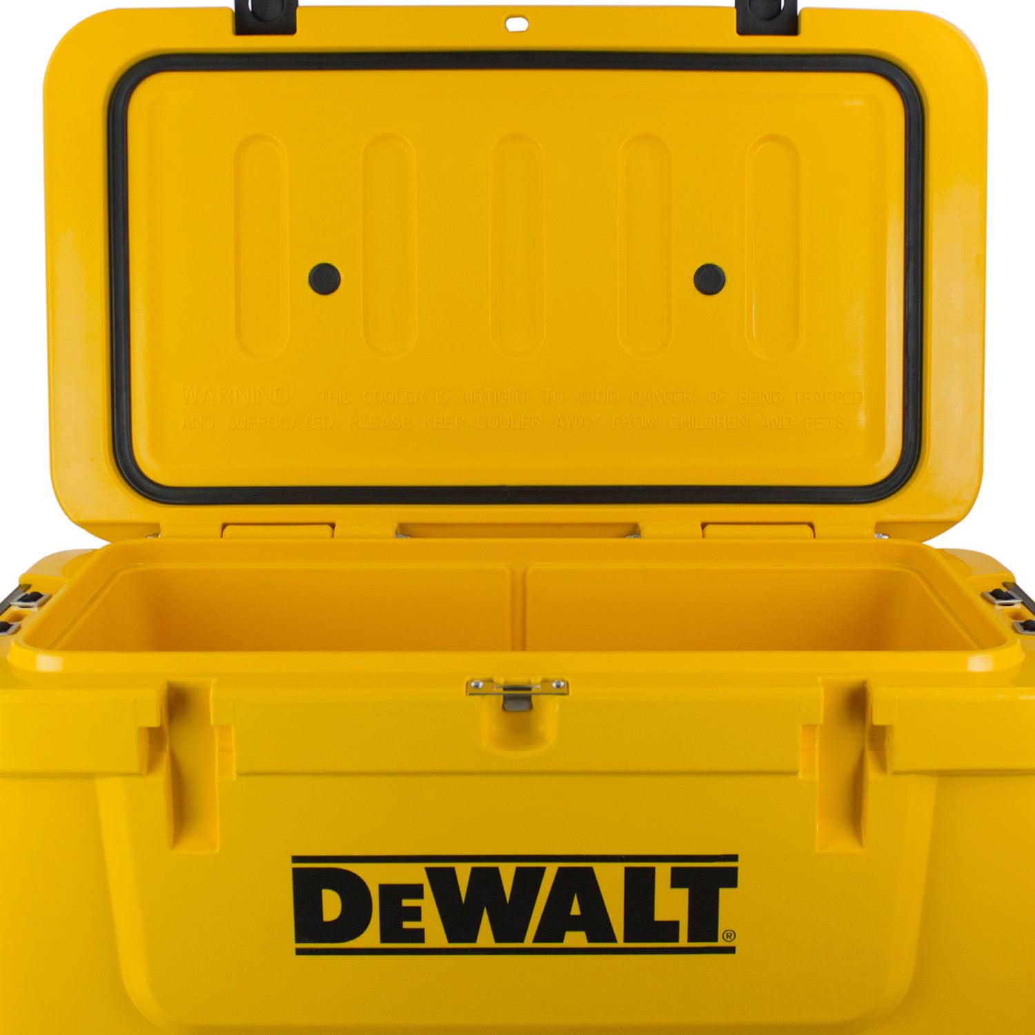 DEWALT 65QT Roto Mold Cooler Powered by Ice and Built to Last The DEWALT 65 Quart Cooler is the all-in-one tool for keeping your food and drinks ice cold on the jobsite. This cooler is ideal for taking to the construction zone backyard barbeques, campgrounds, sporting events or wherever life may take you. The T.O.U.G.H. Roto-mold design is nearly indestructible and will stand up to the roughest treatment. The strong exterior construction reduces the amount of stress typically put on a cooler during everyday use. The reinforced pressure-injected insulation provides superior ice retention and ensures Temperature Optimization Under Great Heat. Keep your drinks and food colder longer with the DEWALT 65 Quart Cooler.