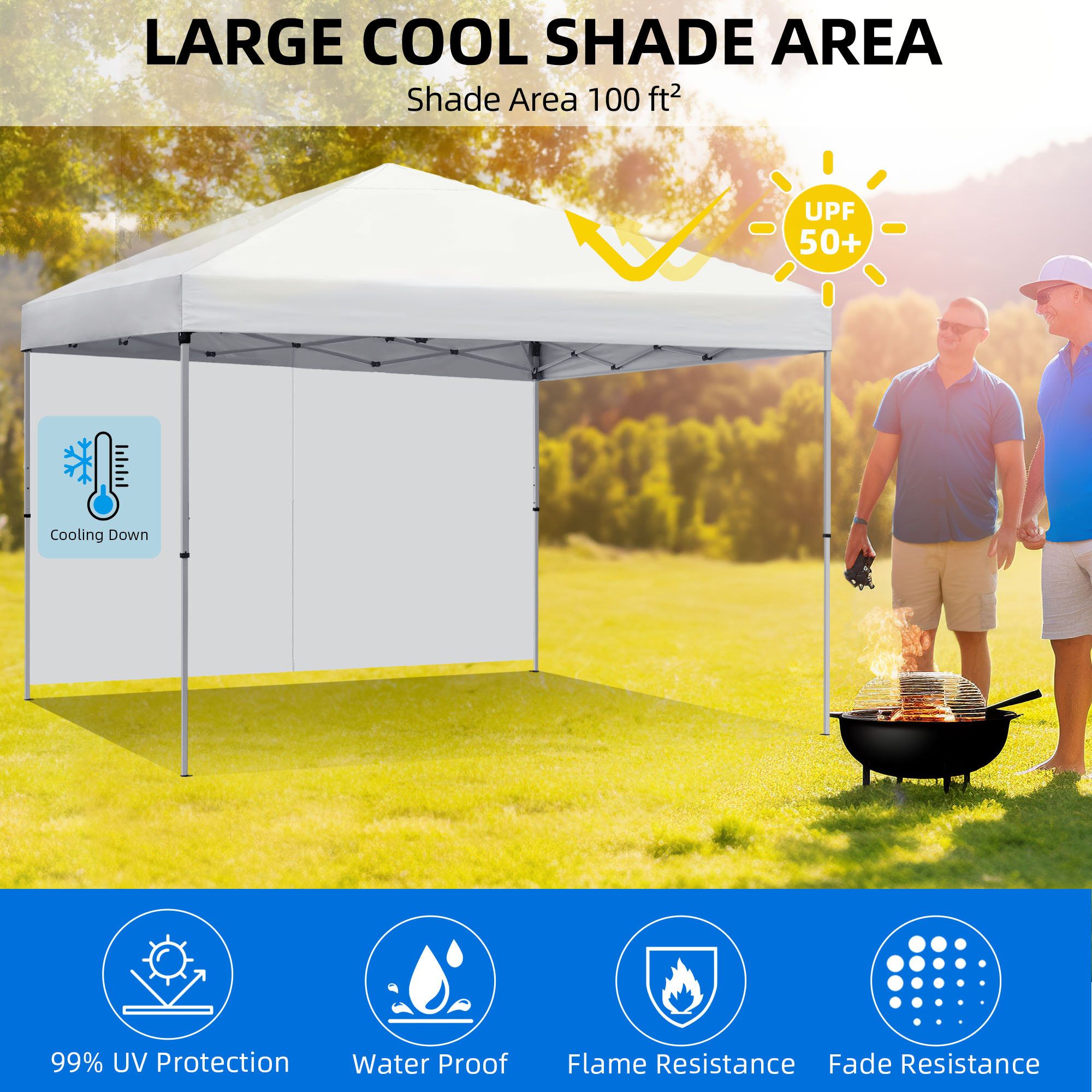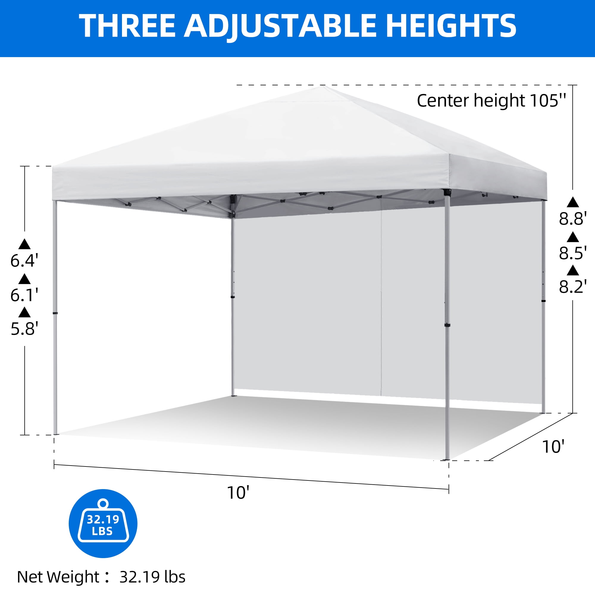 Dextrus 10ft x 10ft Outdoor Pop Up Canopy Tent with Removable Sidewall,White