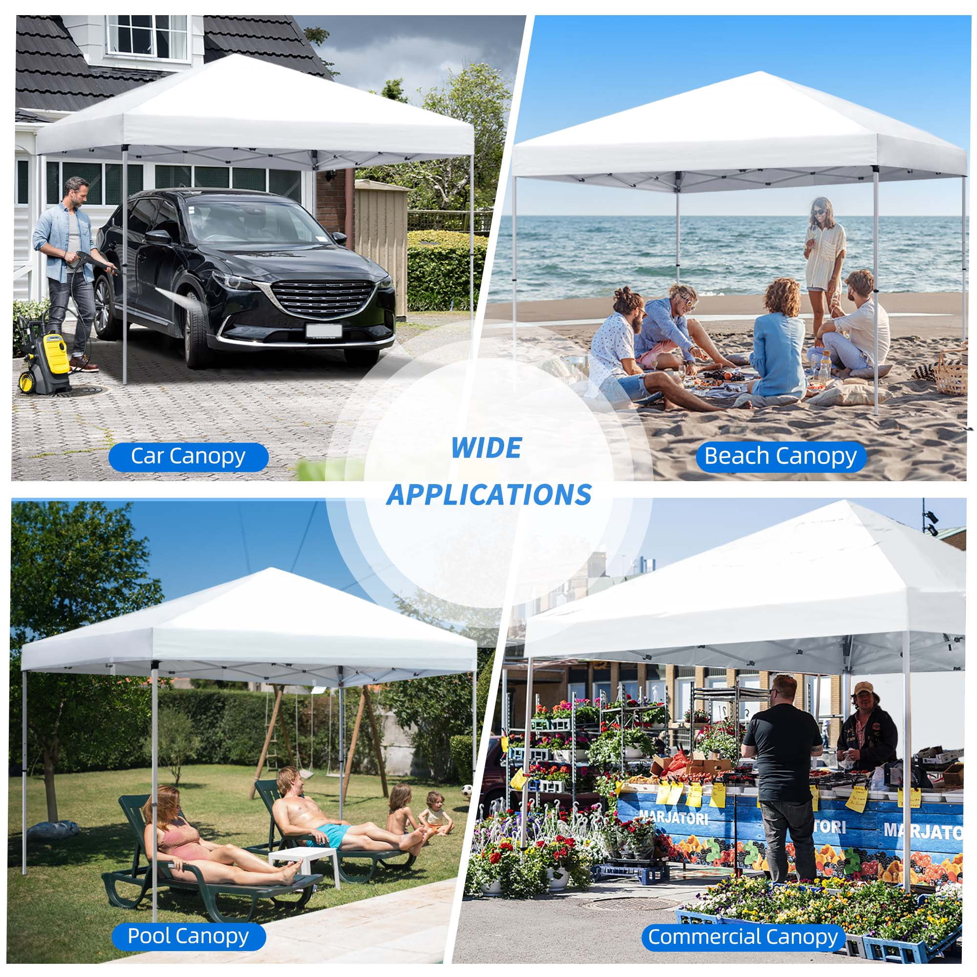 Experience Convenient Shelter with the Pop-Up Canopy Tent Effortless Setup and Takedown: – The Pop-Up Canopy Tent is designed for quick and hassle-free installation. In just a few minutes, you can have your canopy tent ready to provide shelter and shade. No tools are required, and the intuitive design allows for easy assembly and disassembly. Adjustable Canopy Heights: – Adapt the canopy tent to different outdoor activities with the adjustable height feature. Choose from three leg height options to suit your specific needs. Whether you’re hosting a patio party, participating in an exhibition, or enjoying a day at the beach, this canopy tent provides the perfect shelter solution. Superior Protection: – Crafted from durable and reliable materials, the Pop-Up Canopy Tent offers excellent protection against the elements. The canopy is made from high-quality fabric that is UV-resistant, flame-resistant, and blocks 99% of harmful UV rays. It is also water-resistant, ensuring that you stay dry during light rain showers. Spacious Coverage: – With a generous coverage area of 100 square feet and an interior height of over 8.8 feet, this canopy comfortably accommodates a group of 8 to 10 people. Enjoy ample space to set up seating, tables, and other items while staying protected from the sun. The included removable sidewall provides additional sun protection and privacy when needed. Durable and Reliable Construction: – The Pop-Up Canopy Tent features a robust and sturdy frame. The thickened, reinforced steel frame is coated with a rust-resistant powder finish, ensuring long-lasting use and protection against chipping, peeling, rust, and corrosion. The sturdy steel feet with anchor holes provide stability, while the easy push-button sliders make height adjustments effortless. Enjoy convenient shelter and protection with the Pop-Up Canopy Tent. With its effortless setup and takedown, adjustable canopy heights, superior protection against UV rays and water, spacious coverage, and durable construction, this canopy tent is the perfect companion for outdoor activities. Whether you’re hosting a party, attending an exhibition, or seeking shade on a sunny day, the Pop-Up Canopy Tent provides the shelter you need with ease and reliability. ✅ Specifications: Pop-Up Canopy Tent Dimension: 120″L x 120″W x 105.5″H Color: White Tent Frame Material: Powder Coated Alloy Steel, Plastic Canopies Material: 210D Oxford Cloth with PU coating (UPF 50+) Adjustable Height: 8.2 -8.8 FT ✅ Package Included: 1 x Canopy Top 1 x Canopy Tent Sidewall 1 x Canopy Tent Frame 8 x Stakes 4 x Canopy Weights (Sandbags) 4 x Rope 1 x Carry Roller Bag 1 x User Manual