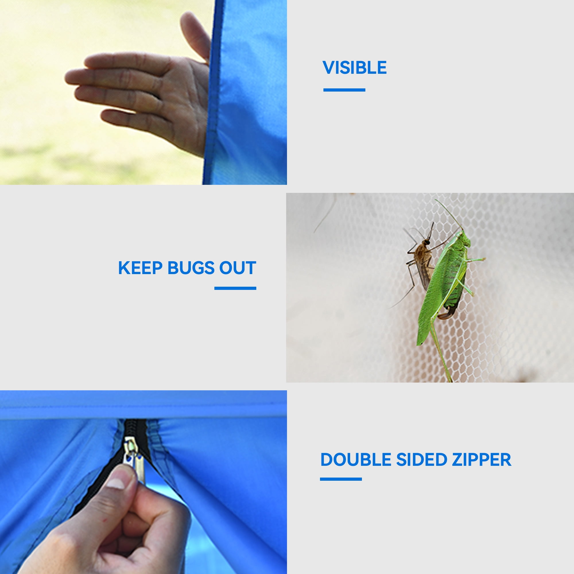 – The Canopy Tent features tightly woven 100% mesh sidewalls with zippers, allowing for easy assembly and removal. These mesh sidewalls not only keep out bugs but also provide unobstructed views. The steel frame is equipped with four control buttons, making it effortless to set up or take down the tent. Save your strength and enjoy hassle-free installation. - Wind-resistant and Secure:
