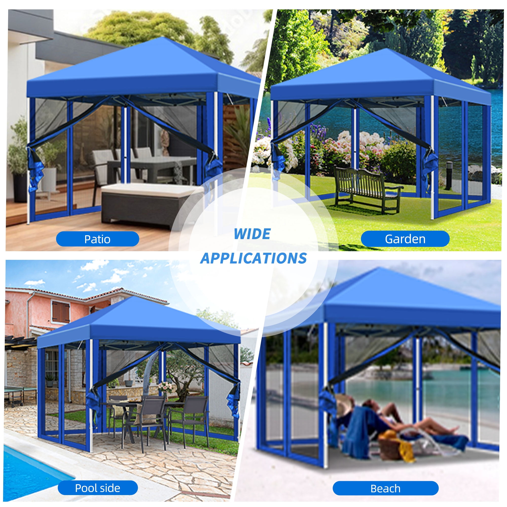 Indulge in the Serenity of our 10×10 FT Pop-Up Canopy Tent with Netting. This exquisite outdoor patio canopy screen house provides the perfect retreat, seamlessly blending convenience and tranquility. Effortlessly set up this tent in minutes, where the beauty of your surroundings unfolds. Crafted with meticulous attention to detail, this canopy tent features netting to shield you from pesky insects. Whether it’s a vibrant patio party, a serene picnic, a refreshing day by the pool, or an idyllic beach escape, our versatile tent accompanies you on every adventure. It comes complete with 4 ropes, 8 stakes, and a convenient carry bag, ensuring easy transportation and storage. Embrace the harmonious merging of nature and comfort with our Pop-Up Canopy Tent, an oasis of relaxation for all your outdoor escapades.