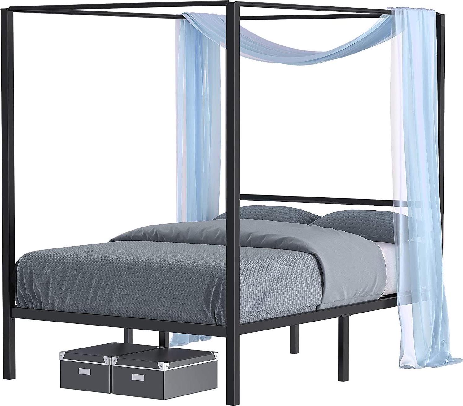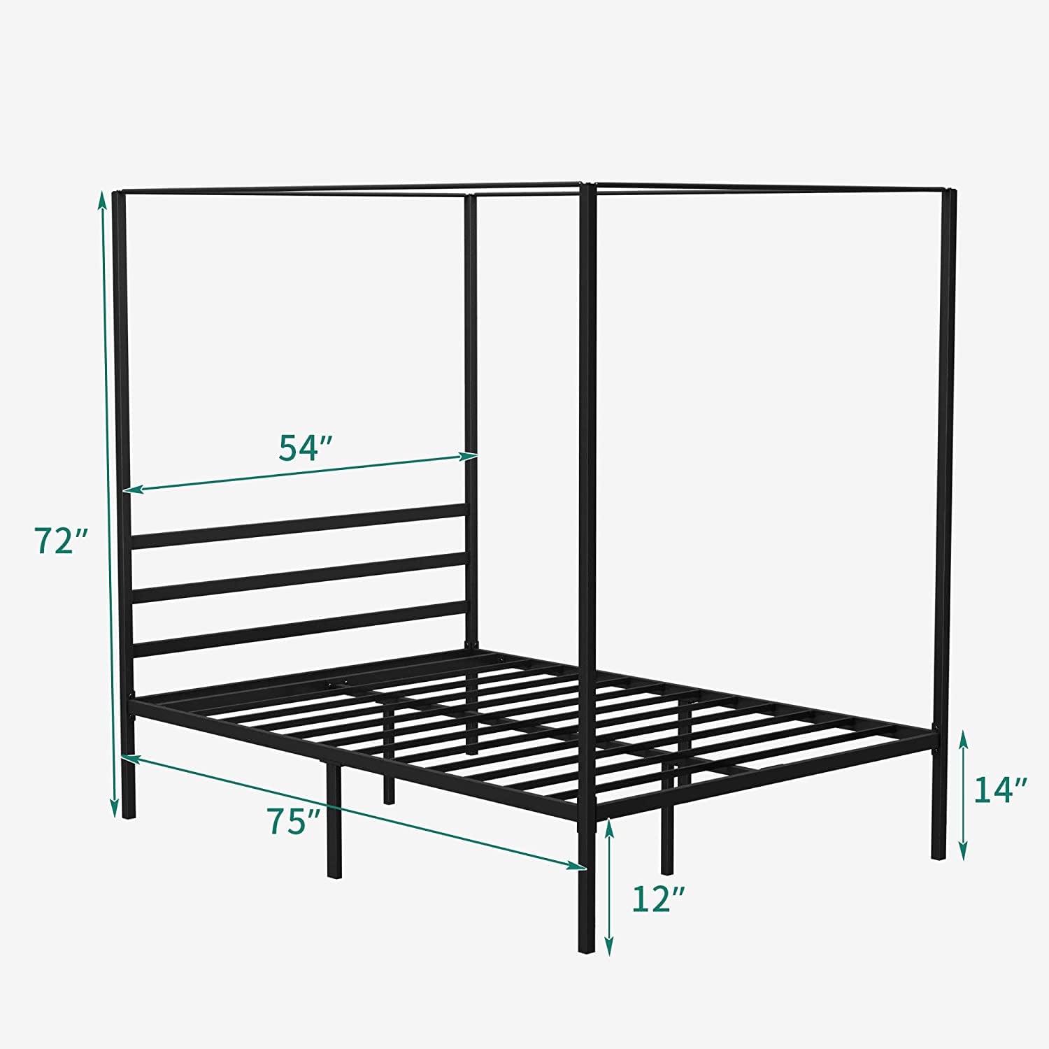 Dextrus 14inch Metal Canopy Bed Frame Platform , Black, Full Size
