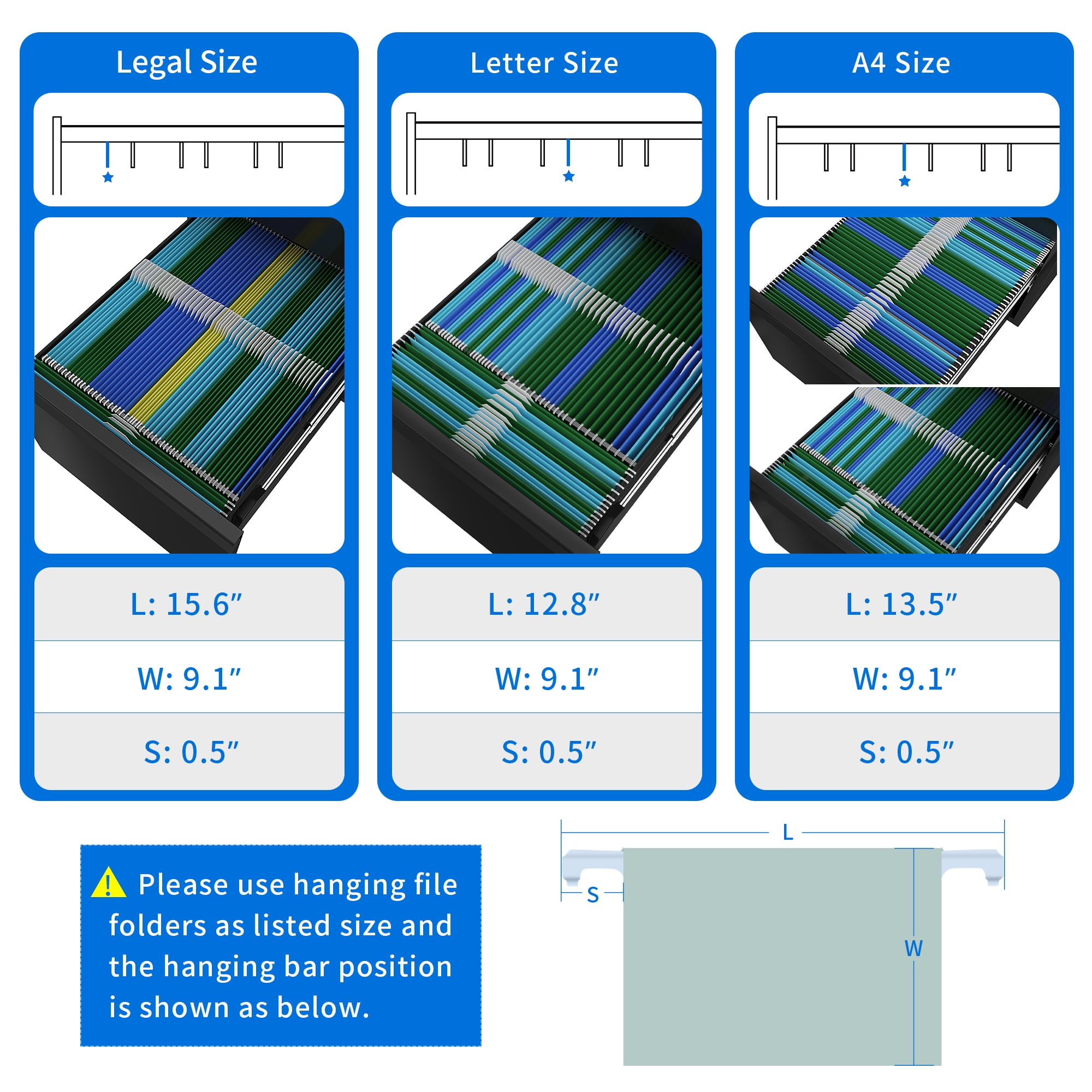 Maximize Office Space: This file cabinet offers ample storage while occupying minimal floor space, making it an ideal solution for decluttering and organizing your office. Keep your files in order and create a tidy workspace. Two keys are included for added privacy and document security. Smooth Mobility: With 4 x 360° swivel casters and 1 anti-tipping central caster, this lockable filing cabinet provides convenient and safe mobility. Enjoy the freedom to move it around effortlessly. The central caster ensures stability and prevents tipping. Spacious Drawers: The two drawers offer generous storage space and are equipped with removable hanging file bars, accommodating letter, legal, and A4 size documents. Keep your files neatly organized and easily accessible. Durability and Strength: Constructed with sturdy, heavy-duty steel, this filing cabinet is built to last. Its robust design ensures long-lasting durability, allowing you to place a printer on top without worrying about deformation or damage. Silent and Smooth Operation: The built-in sliding rail ensures effortless and noiseless opening and closing of drawers. Enjoy a quiet work environment without any distractions.