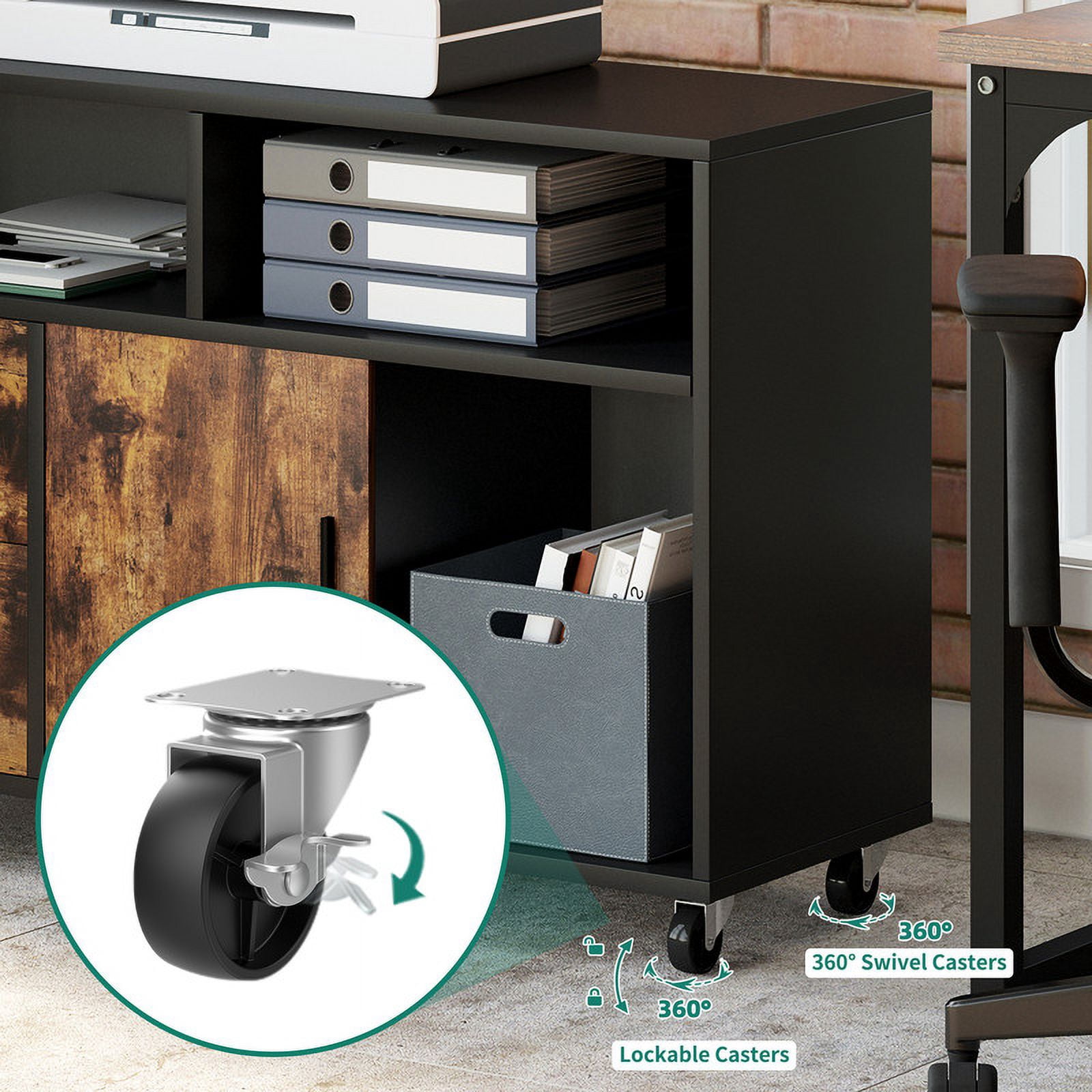 Dextrus SLEEK ROLLING FILE CABINET FOR HOME OFFICE A office storage organization with doors and printer stand Featuring varied storage space with multiple functions. • Durable solid construction ensures strong load capacity. • Compact size & 360° wheels make it easy to put under or on the side of your desk. • Retro-inspired style fits any decor of home office.