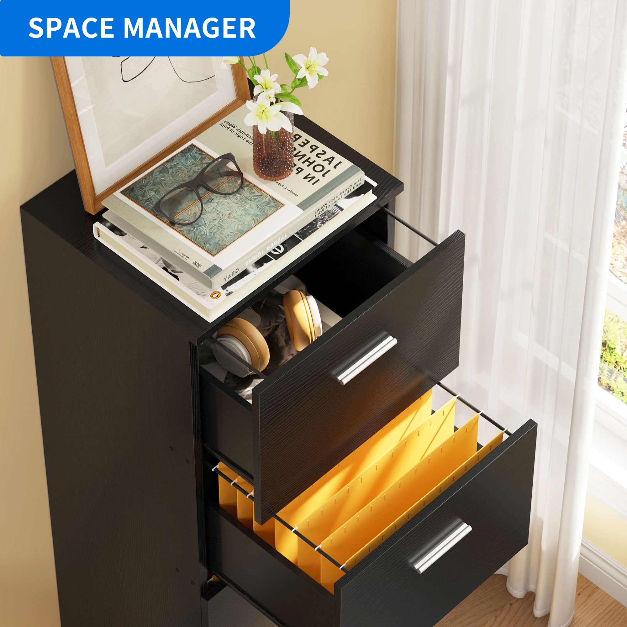 Dextrus 4-Drawer Wood File Cabinet with Lock,15.8″ Deep Vertical Filing Cabinet for Letter A4-Sized Files, Easy to Assemble, Black