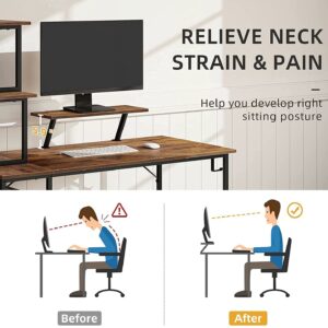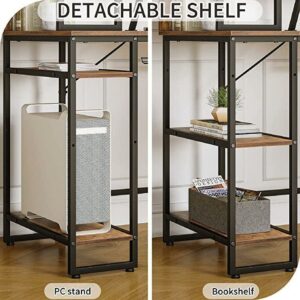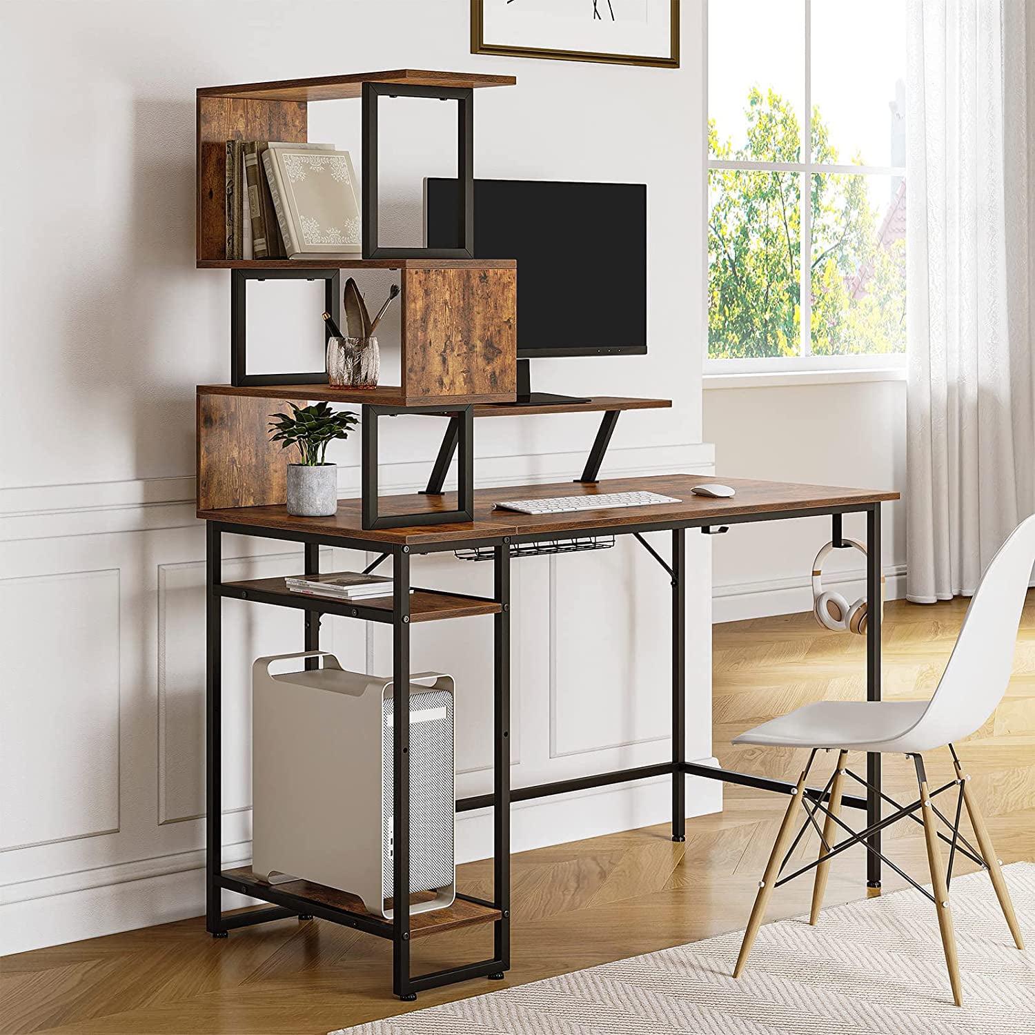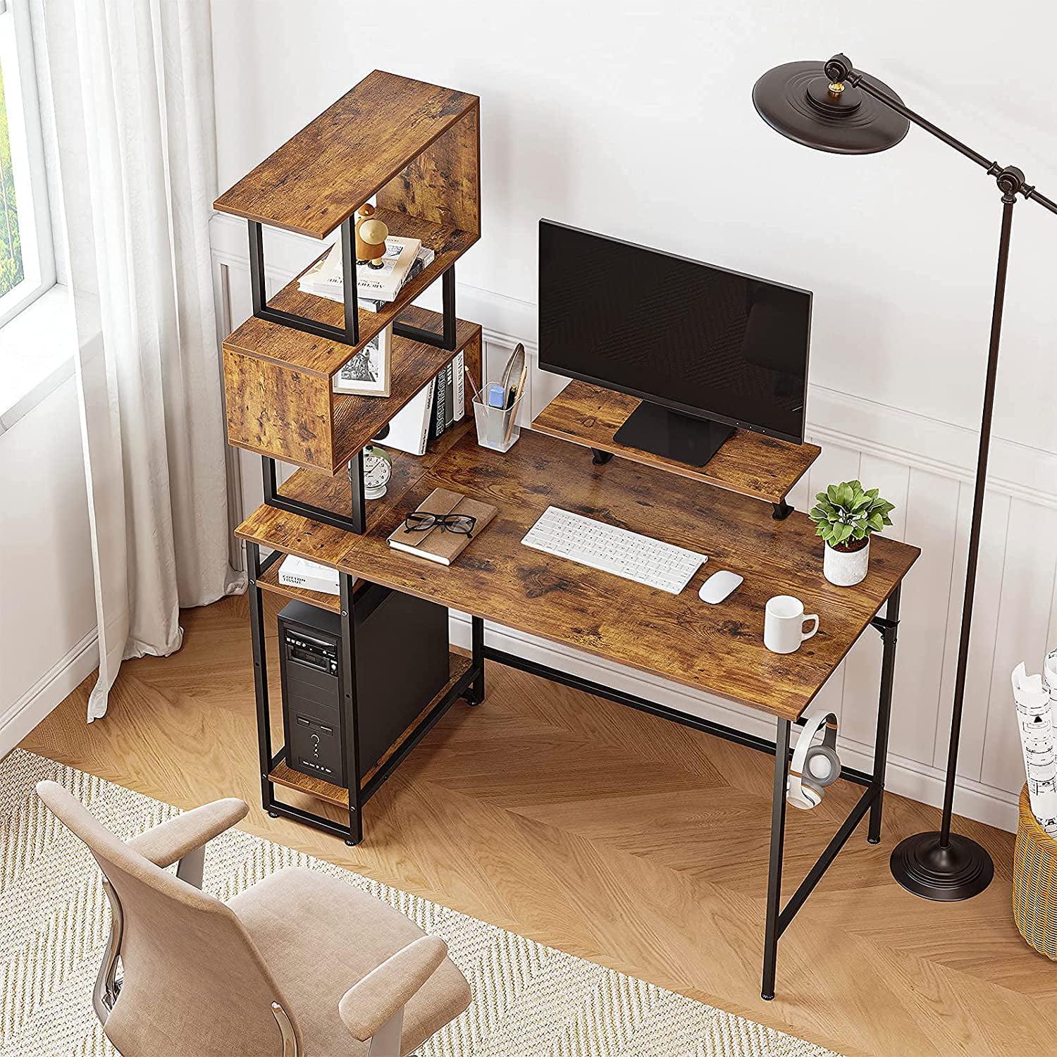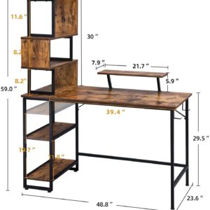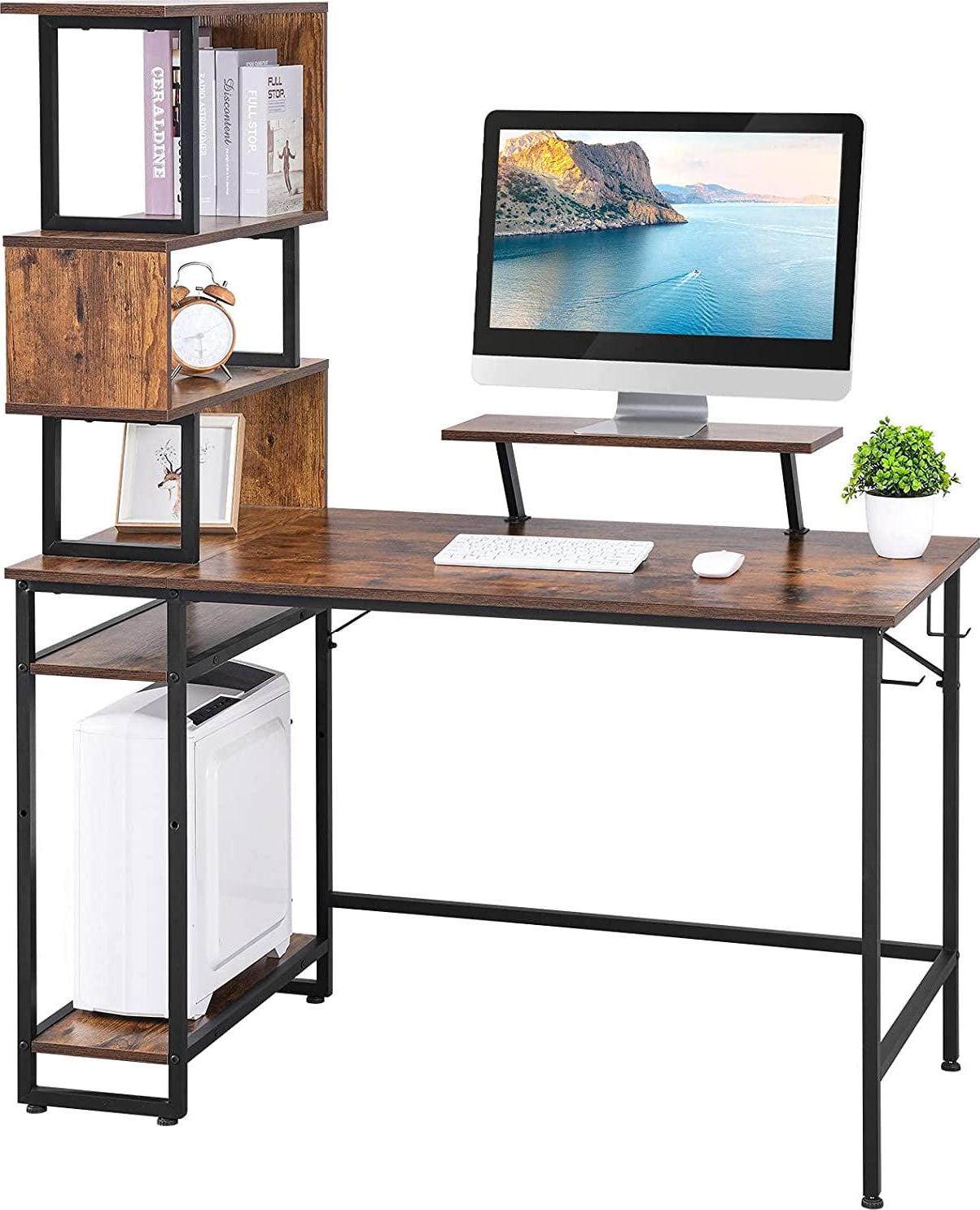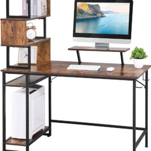 Dextrus 47” Computer Desk with Storage Shelves, Modern Corner Desk with Monitor Stand, Office Desk Gaming desk with CPU Stand for Home Office, Retro Brown