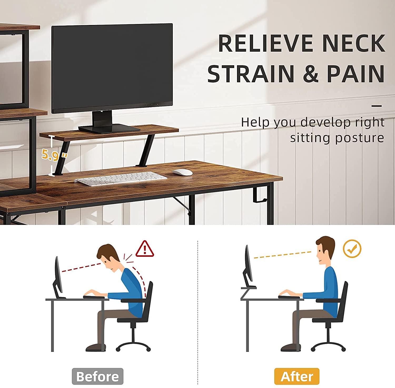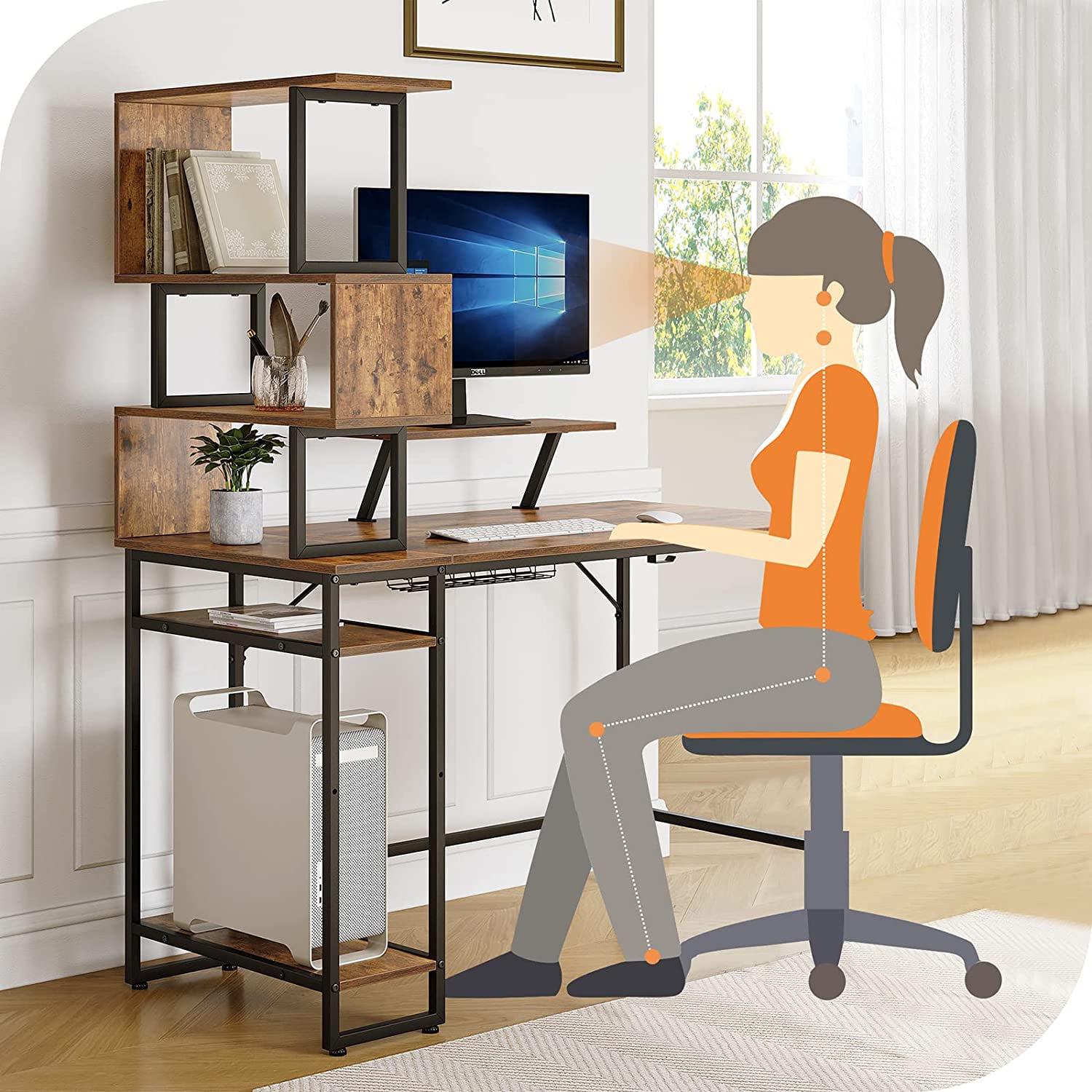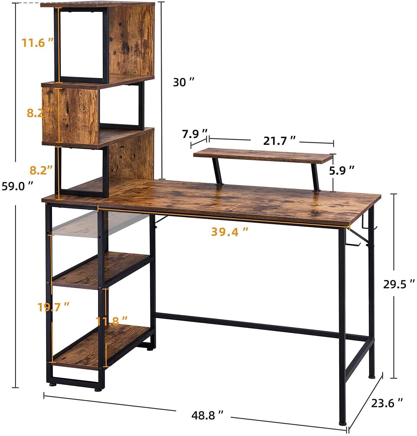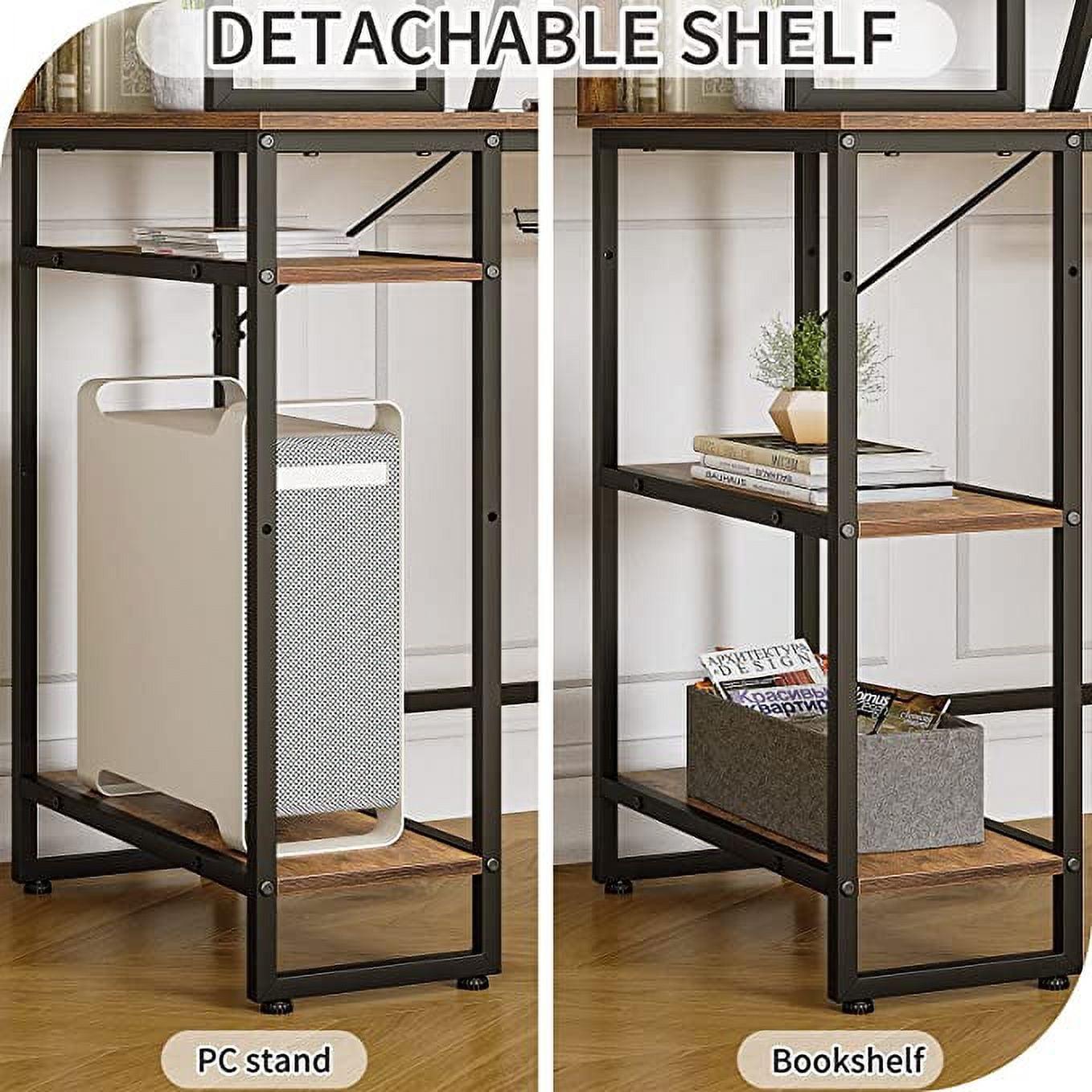 – AMPLE SHELF SPACE: This desk offers an expansive 48.8″ x 23.6″ workspace, complemented by 5-tier bookshelves for convenient storage. The monitor stand is detachable, making it an excellent choice for home office use.