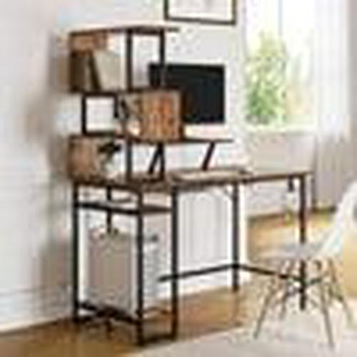 Upgrade your home office by one step via bringing this modern computer desk with a ladder design bookshelf! this desk features a floor-standing bookrack and a vast workstation for comfortably working, studying, or playing games. Moreover, it is specially designed to hold a monitor stand, organize charging cables, and hang bags, umbrellas, etc.
