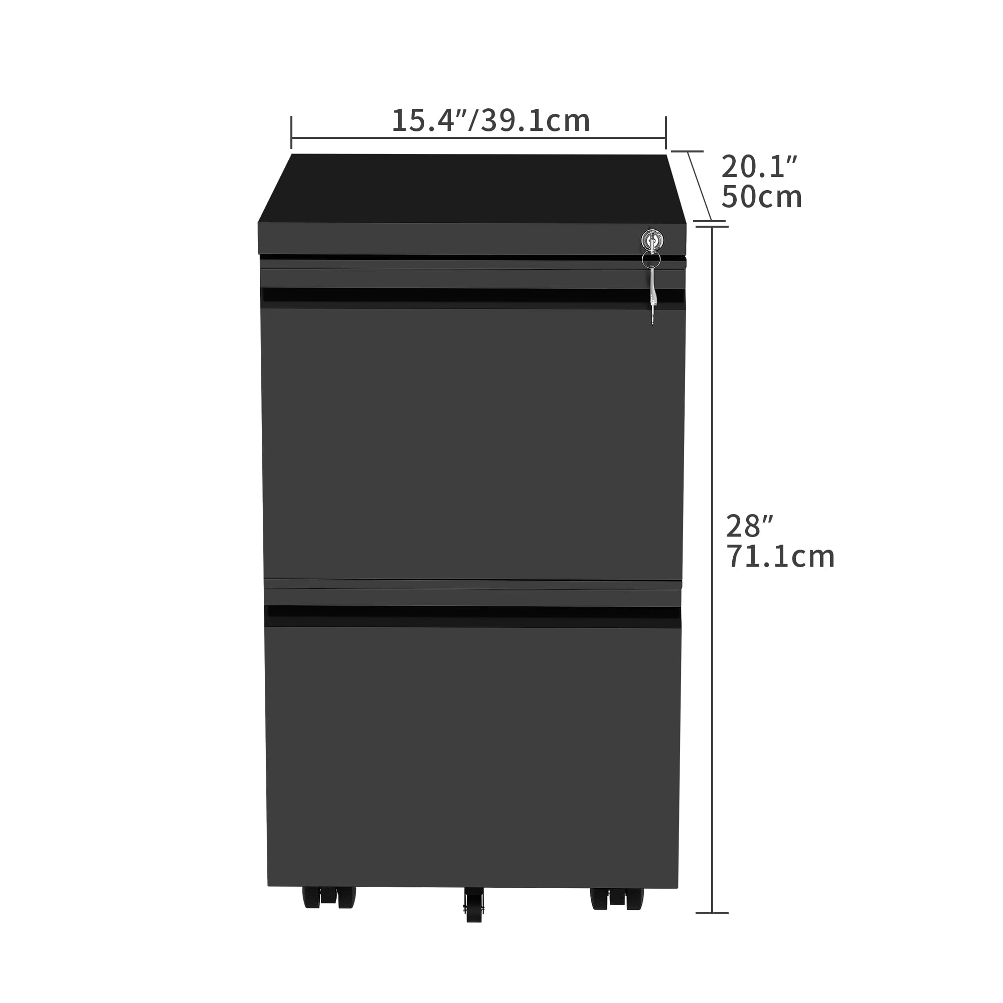 Maximize Office Space: This file cabinet offers ample storage while occupying minimal floor space, making it an ideal solution for decluttering and organizing your office. Keep your files in order and create a tidy workspace. Two keys are included for added privacy and document security. Smooth Mobility: With 4 x 360° swivel casters and 1 anti-tipping central caster, this lockable filing cabinet provides convenient and safe mobility. Enjoy the freedom to move it around effortlessly. The central caster ensures stability and prevents tipping. Spacious Drawers: The two drawers offer generous storage space and are equipped with removable hanging file bars, accommodating letter, legal, and A4 size documents. Keep your files neatly organized and easily accessible. Durability and Strength: Constructed with sturdy, heavy-duty steel, this filing cabinet is built to last. Its robust design ensures long-lasting durability, allowing you to place a printer on top without worrying about deformation or damage. Silent and Smooth Operation: The built-in sliding rail ensures effortless and noiseless opening and closing of drawers. Enjoy a quiet work environment without any distractions.