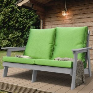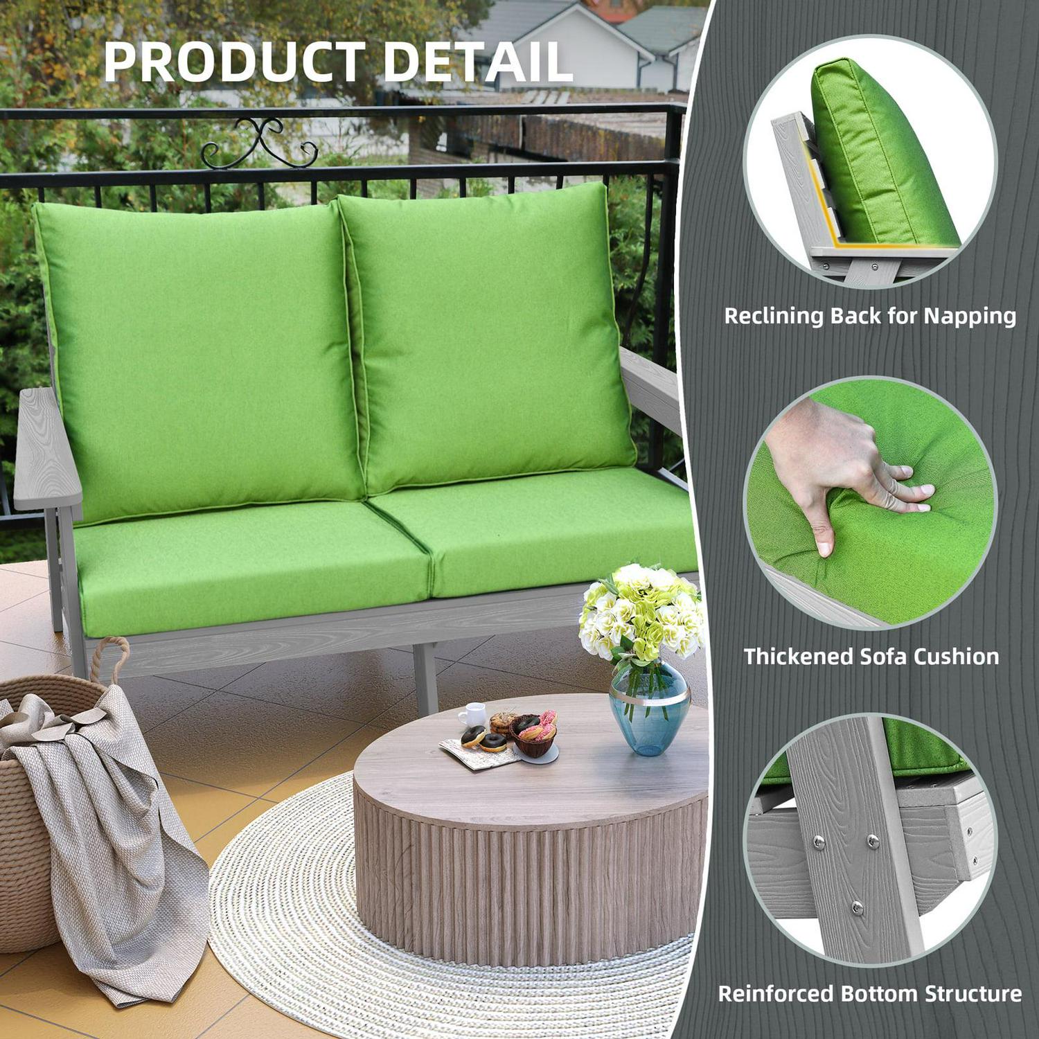 DEXTRUS Hips Patio Loveseat with Cushion, All-Weather Resistant Outdoor Garden Sofa Wood Grain Outdoor Couch with Polyester Pillow, Green