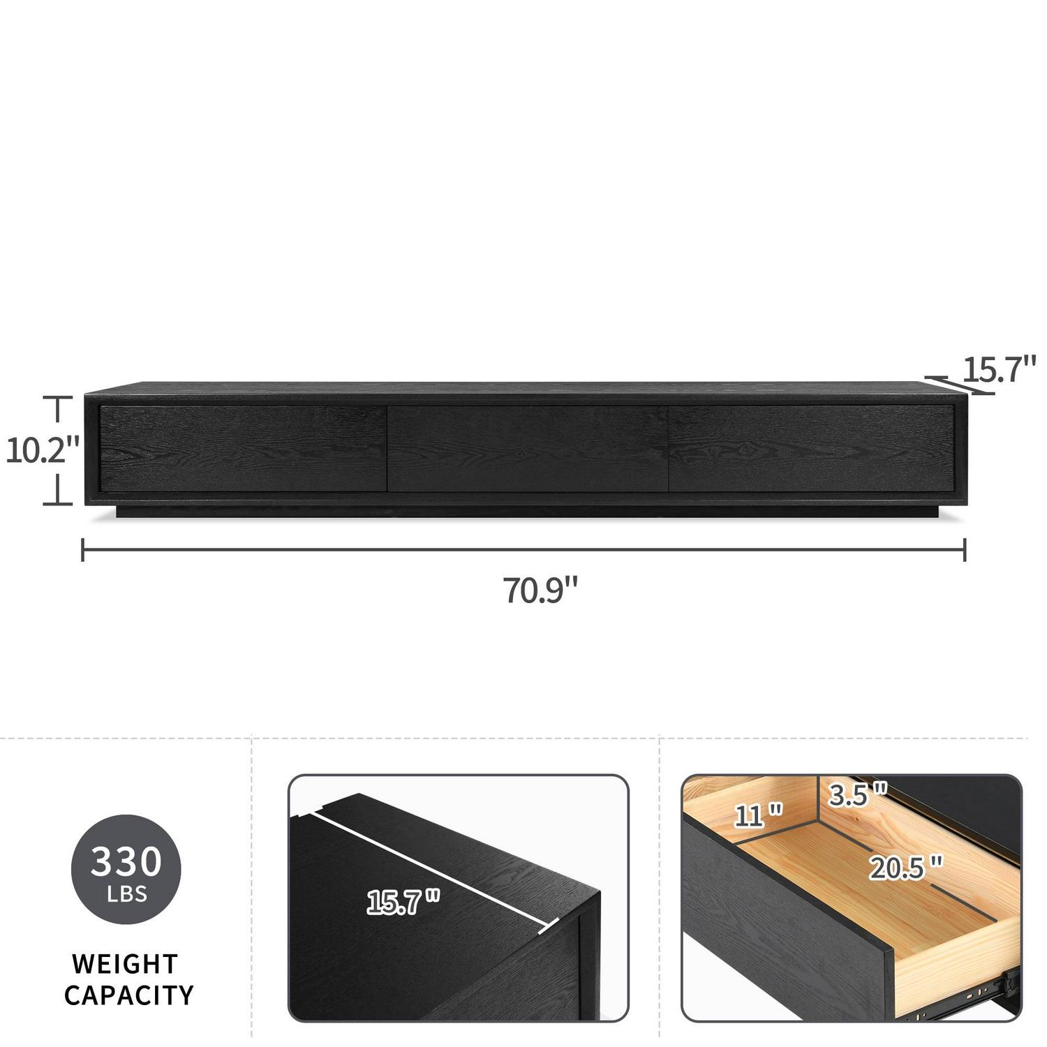 Dextrus Laconic TV Console Black Entertainment Media Stand with 3-Drawer Storage for Televisions up to 75 Inch TV Stand