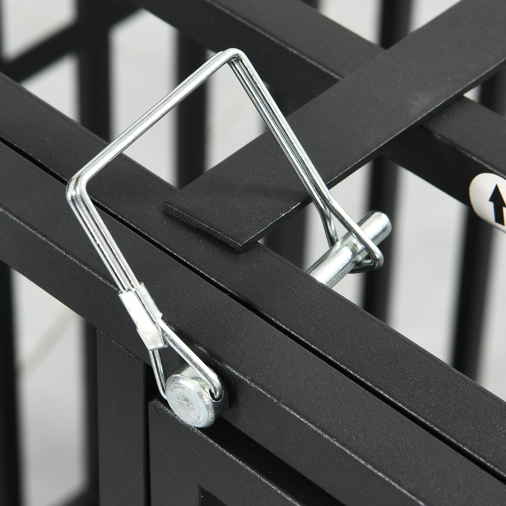 Our dog crate features three access doors, providing maximum convenience, and is made of durable thick steel, ensuring the safe containment of your pet. Additionally, we have designed double upgraded bolt locks specifically for anxious dogs, keeping them securely within the crate to prevent damage or injury. The removable tray also facilitates easy cleaning and organization for daily maintenance. It is suitable for both large and medium-sized dogs. 3-Door Design Dual-Lock Security Design 360° Rotating Wheels Durable Steel Construction Removable Tray