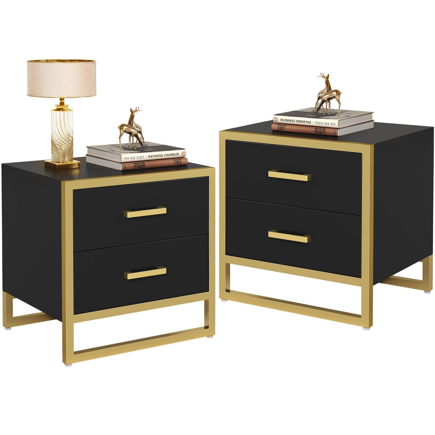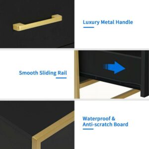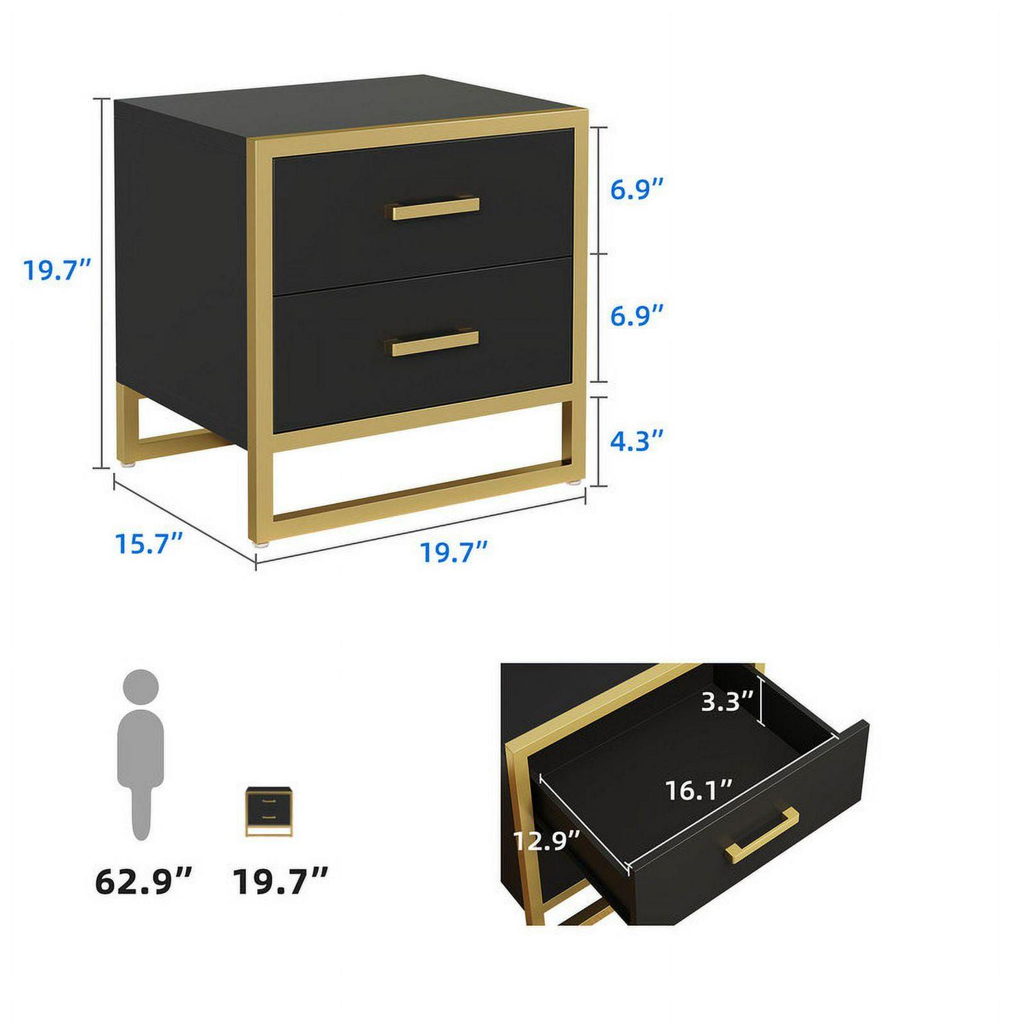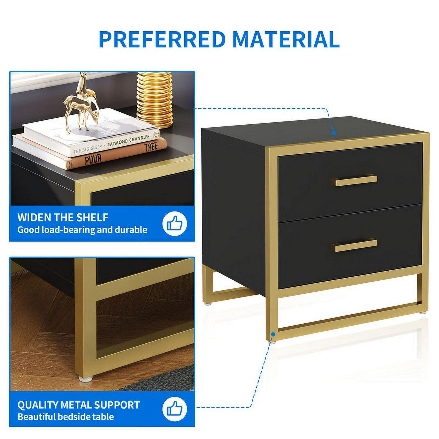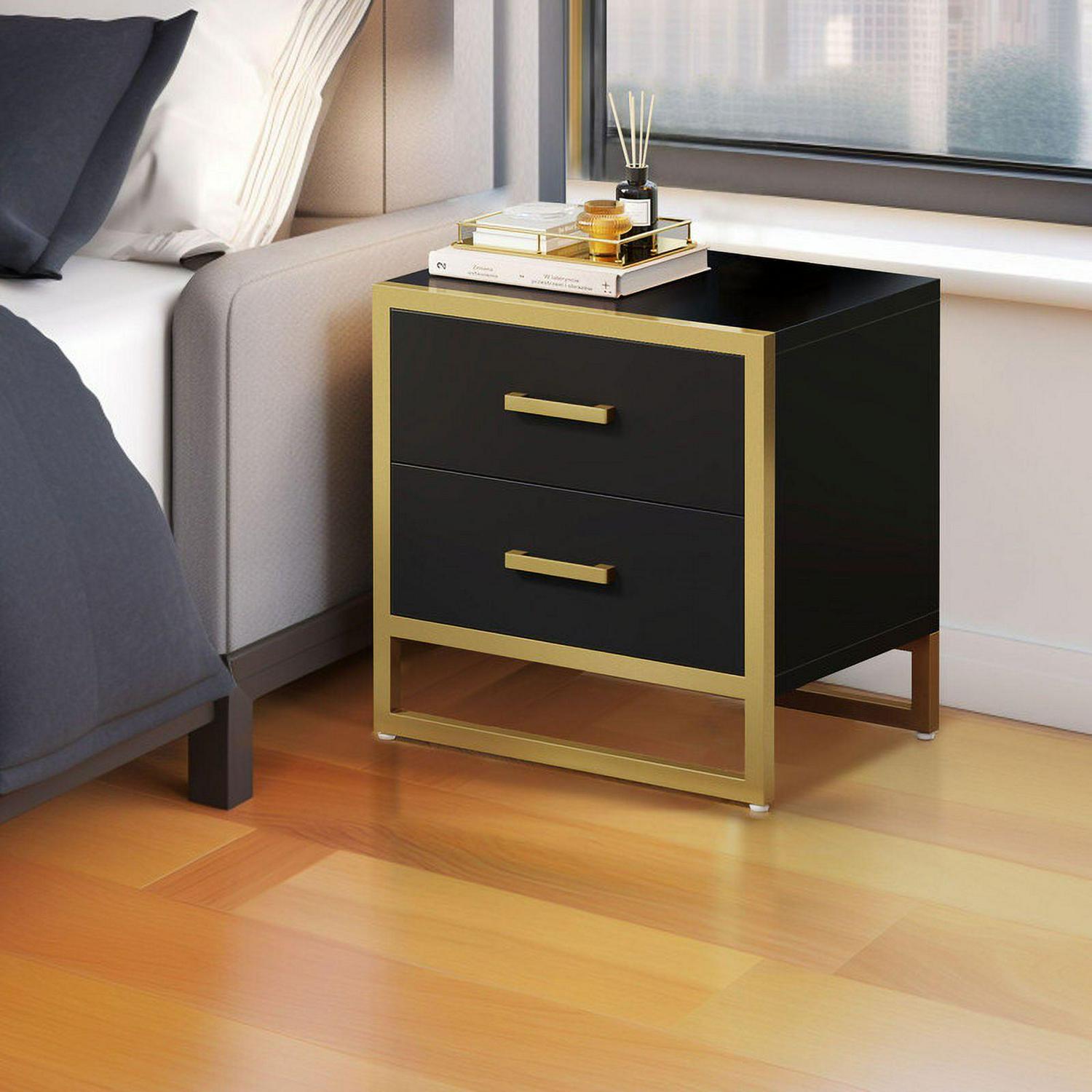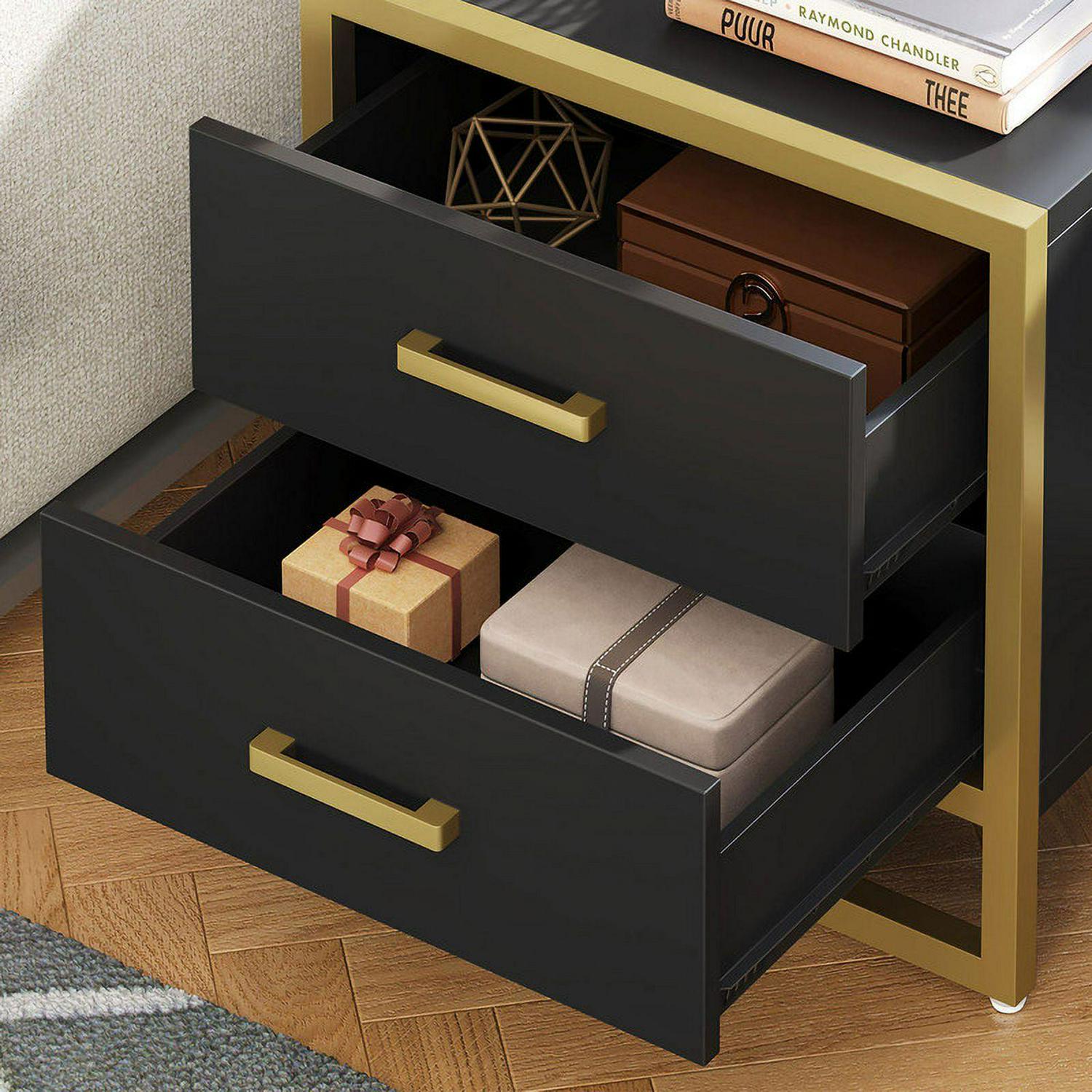Dextrus nightstands is simple but exquisite. It featuring black and gold elements and designed with a spacious top and two large drawers for easy access to magazines, mobile phones, etc. At the same time, this end side table fits well in a small space without taking up much space.Add more convenience to your home by bringing a combo of modern aesthetics with daily practicality. Aesthetically pleasing and functional, make you enjoy leisure time. This 2-tier beside table is perfect for bedside storage.Also suitable for use as an end table next to the living room beside a sofa.