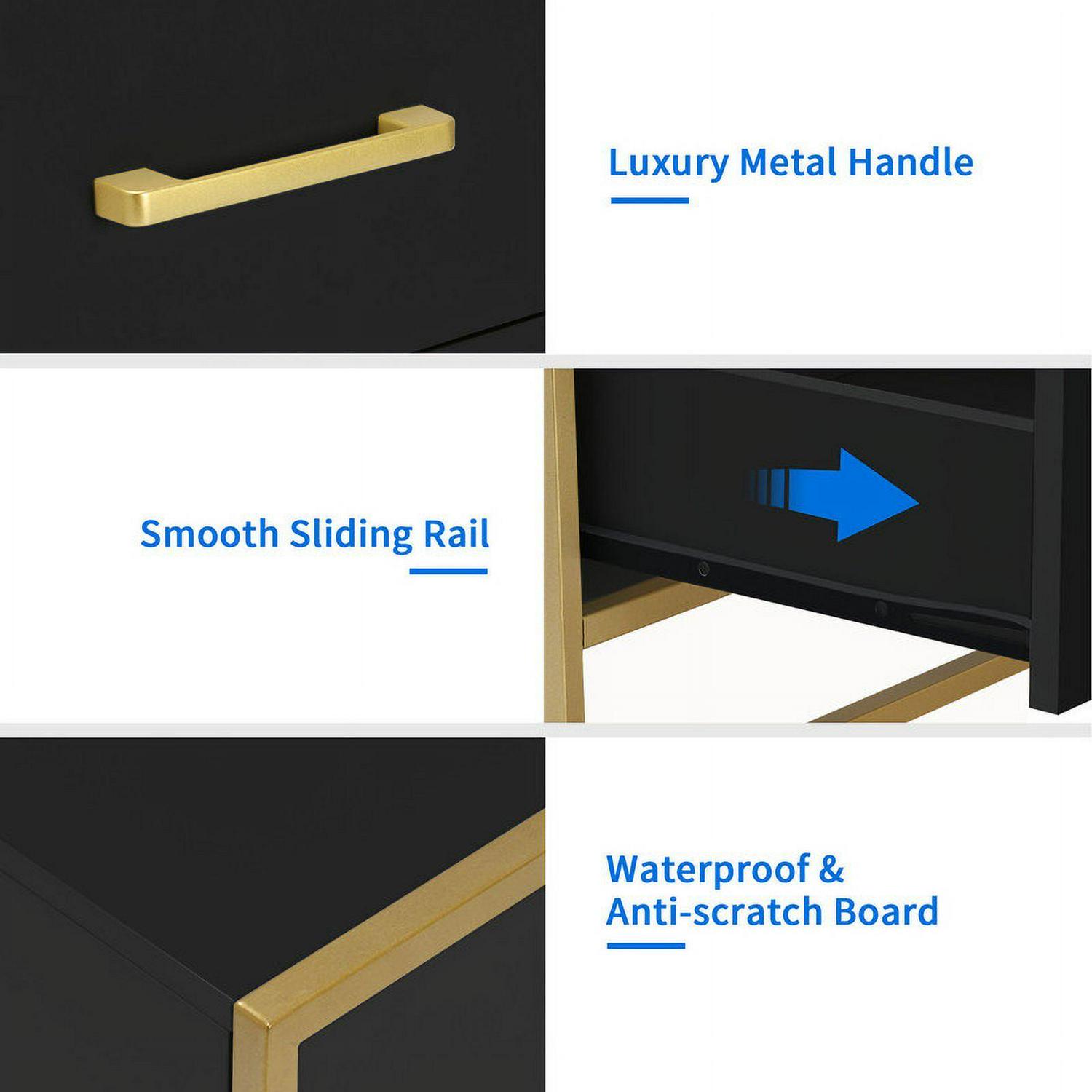 – TIMELESS ELEGANCE: This white nightstand, with its captivating fusion of black and gold accents, melds minimalistic style with clean lines, radiating fashion and sophistication. A must-have for elevating your home decor.