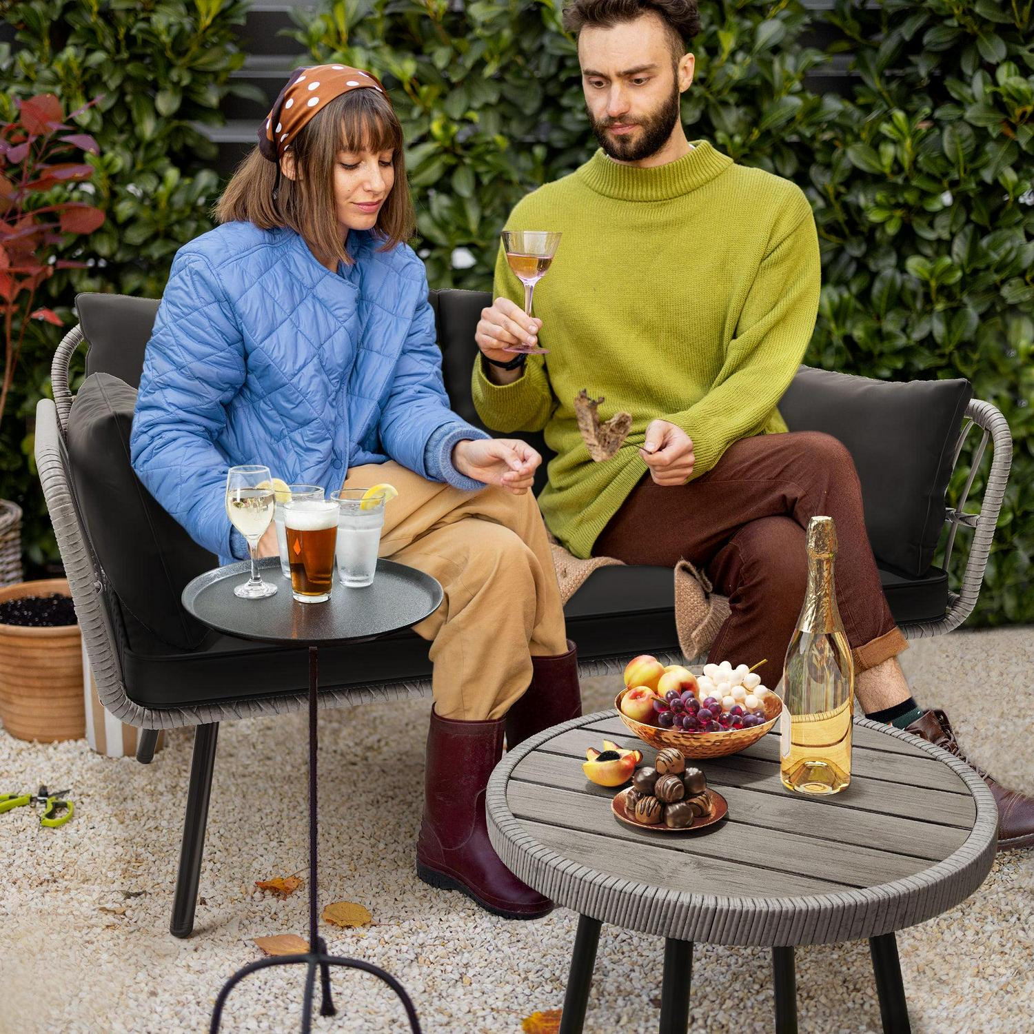 – WEATHERPROOF AND STABLE: Crafted from a plated steel frame wrapped in PE wicker, this patio conversation set is built for any season, but also robust enough to support up to 530lbs.