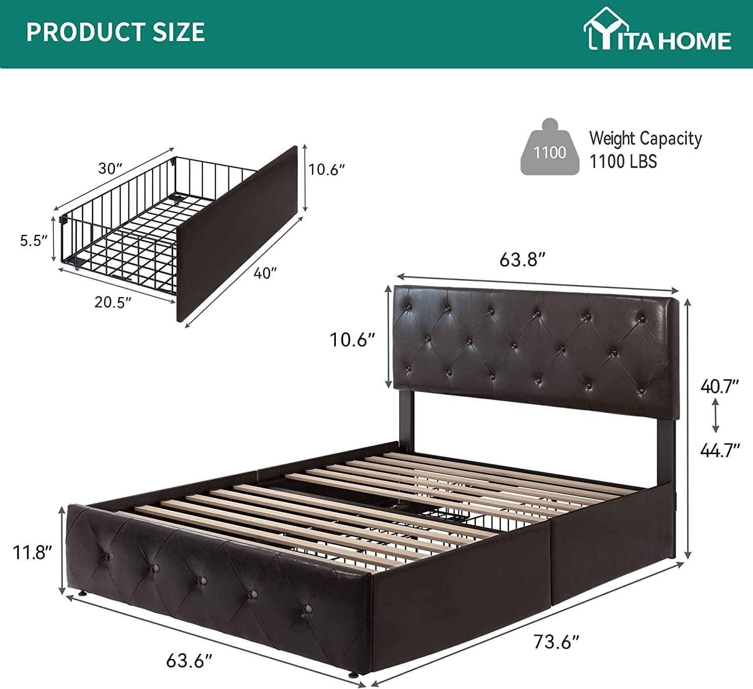 – STURDY CONSTRUCTION- Made of sturdy fixed wooden slat system to ensure the sturdiness and stability of the bed frame. The four steel drawers underneath are made of high-density steel, which enhances its sturdiness and durability. No need to worry about getting scratched and bent.