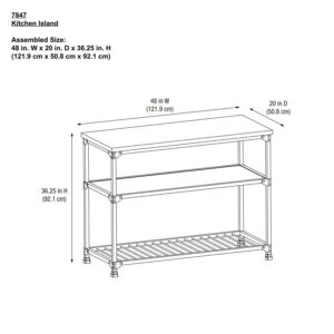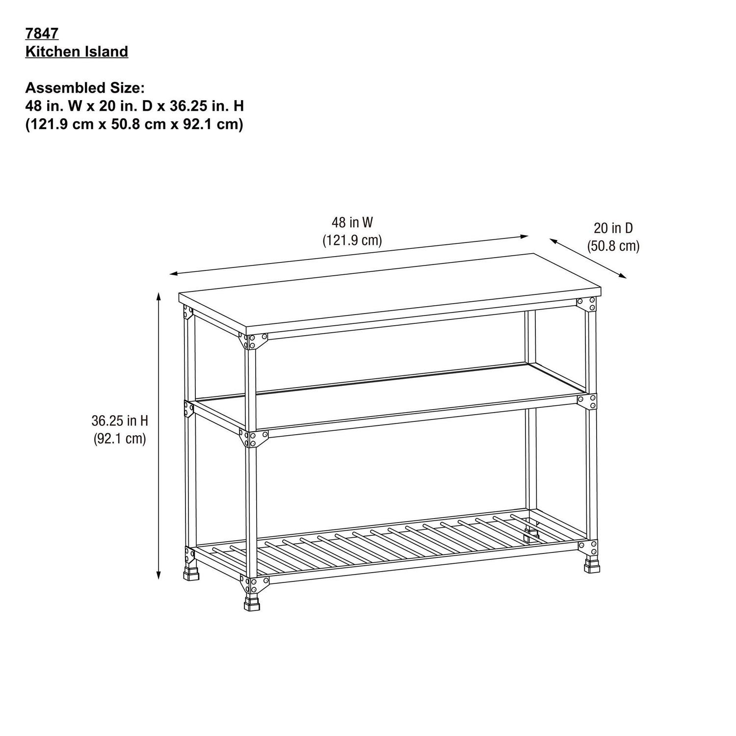 – Assembled dimensions: 48 W x 20 D x 36.25 H