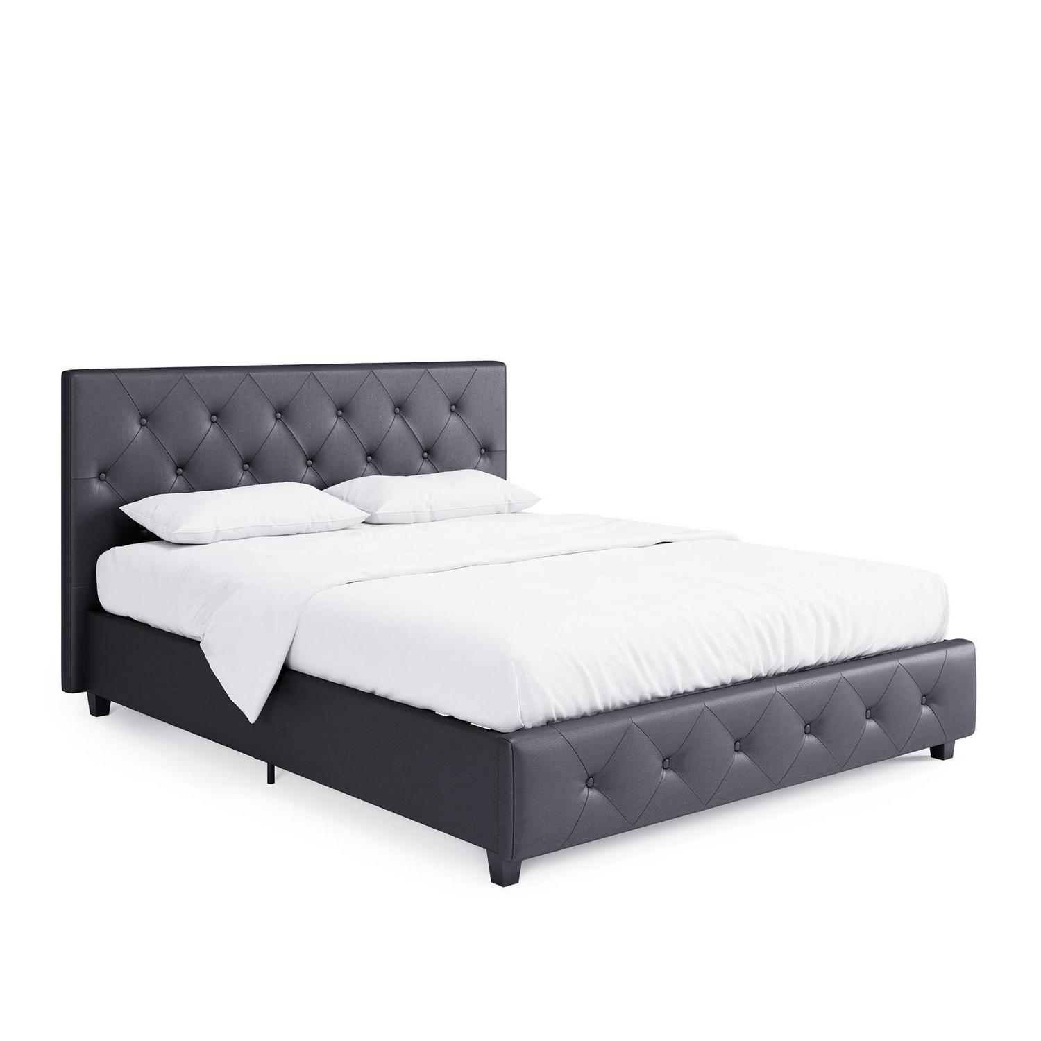DHP Dakota Upholstered Platform Bed, Queen, Gray Faux Leather
