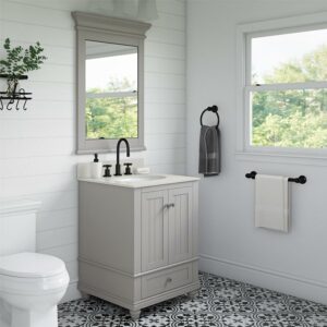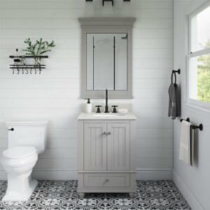 – Ships in one box and assembles easily. Available in three vanity sizes: 24 , 30 , 36 . Offered in Natural Rustic, White or Gray. Levelers are included. Can be paired with the matching mirror. The 24 vanity can be bundled with the 24 mirror and the 30 mirror can be paired with both the 30 and 36 vanities.
