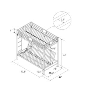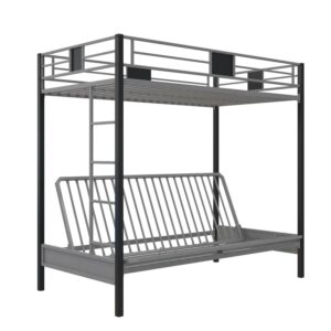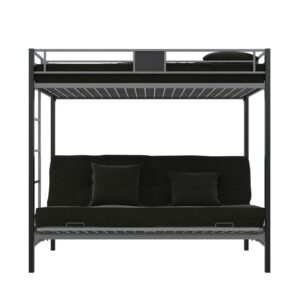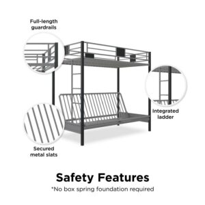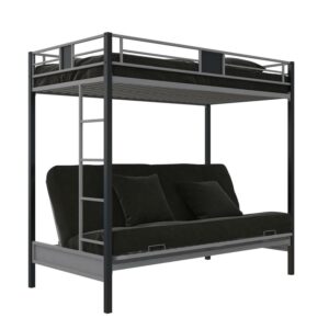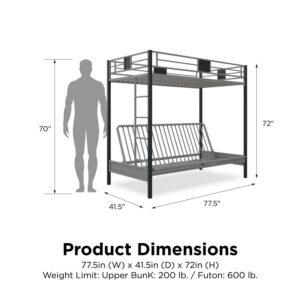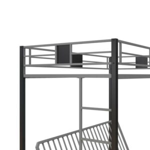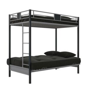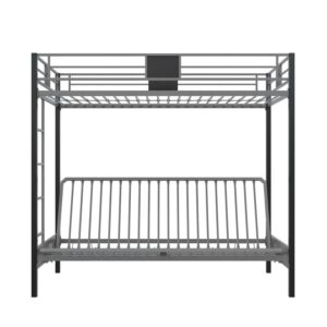 DHP Silver Screen Twin over Futon Metal Bunk Bed, Silver/Black