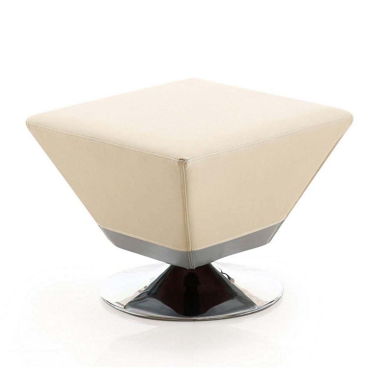 Diamond Tan and Polished Chrome Swivel Ottoman The Diamond swivel ottoman presents architectural expertise in a variety of vivid colors. Finely crafted to be the perfect accent to any decor, the Diamond takes clean lines, supple Faux Leather, and stunning chrome to craft a piece of understated elegance. Hand-upholstered from the finest Faux Leather, the Diamond is as versatile as it is sleek. Whether in need of more surface space, or used to just kick back and relax, the Diamond ottoman is the ideal solution for all your needs.