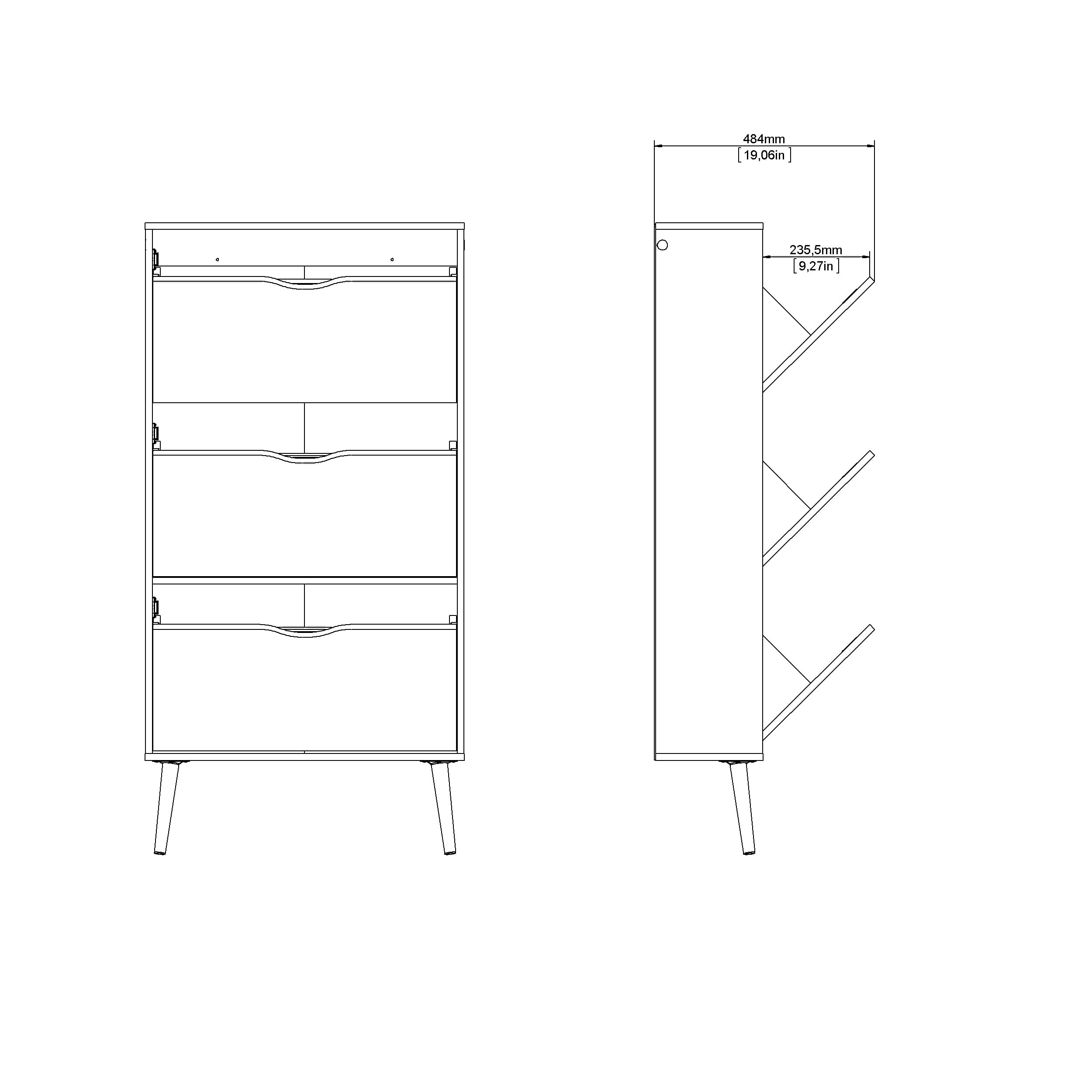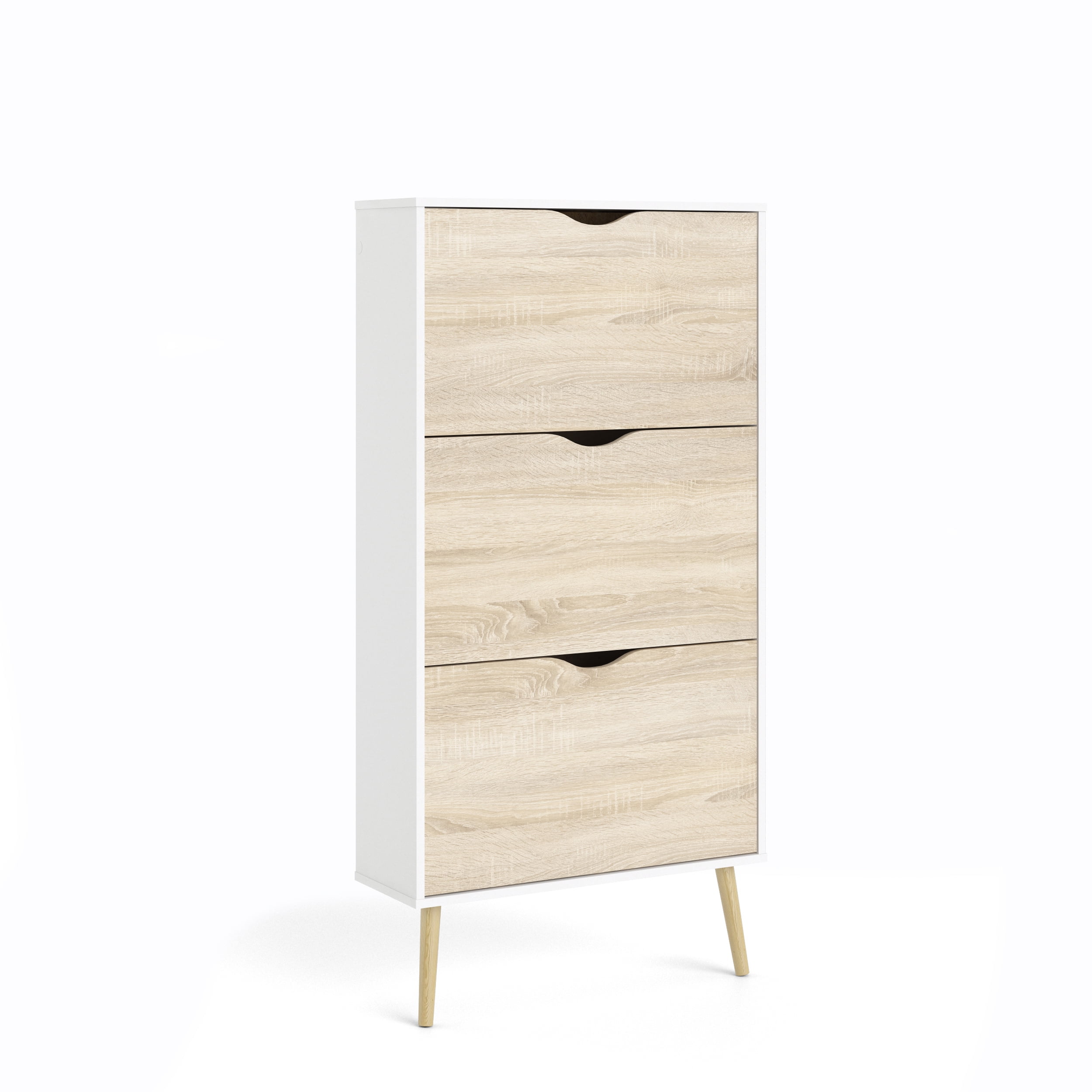 The Diana 3 Drawer Shoe Cabinet is a must-have for shoe lovers. In true Scandinavian style the shoe cabinet neatly organizes up to 18 to 21 pairs of shoes in three sleekly designed compartments. With room for two rows of shoes in each compartment, the easy-open drawers feature a simple handle-free front, while the contrasting white cabinet offers a durable, scratch-resistant surface. You can never have enough shoes — but you can keep them organized with this stylish Diana 3 Drawer Shoe Cabinet. Complete your living space with other items from the Diana collection.