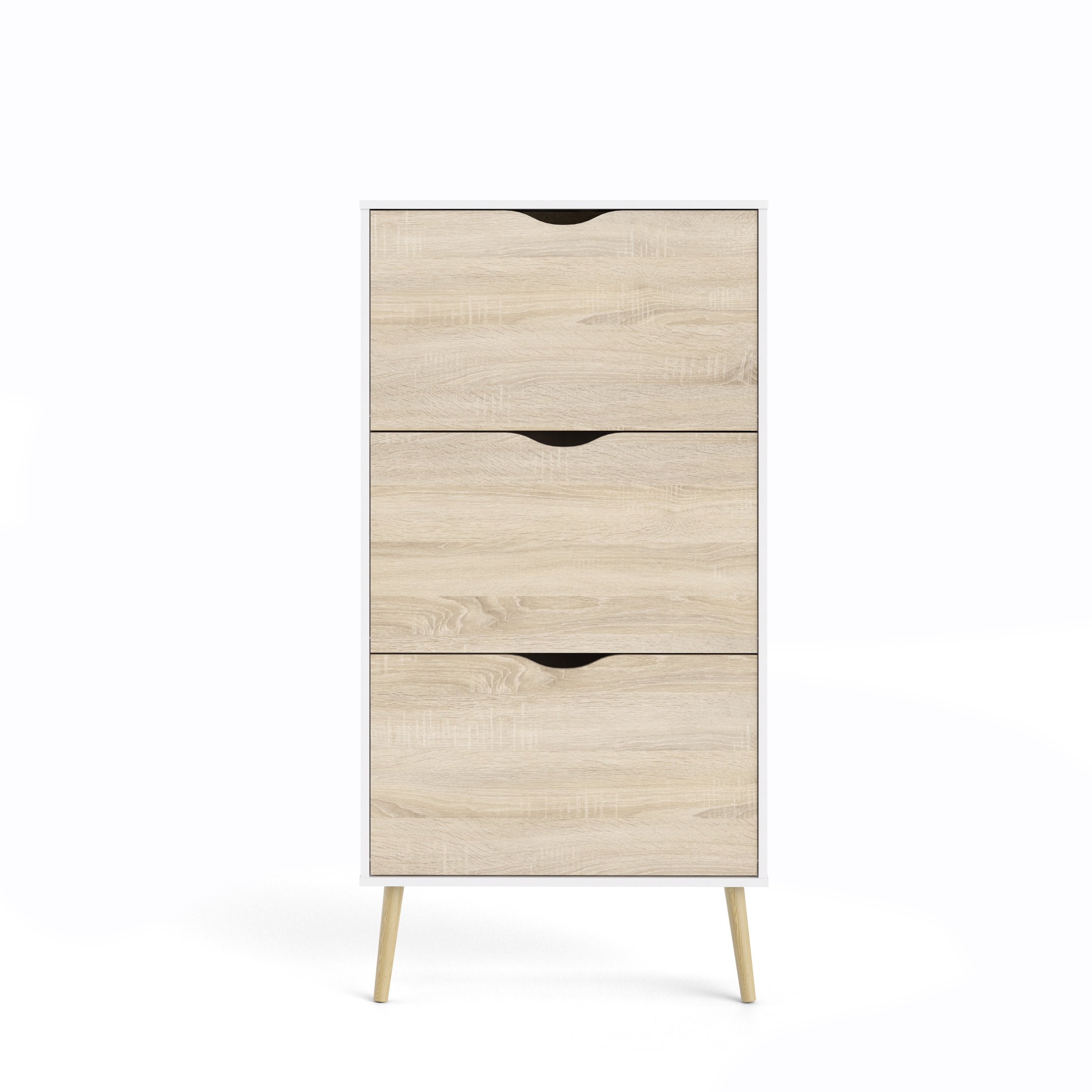 Tvilum Diana 3-Drawer Shoe Accent Cabinet, White/Oak Structure