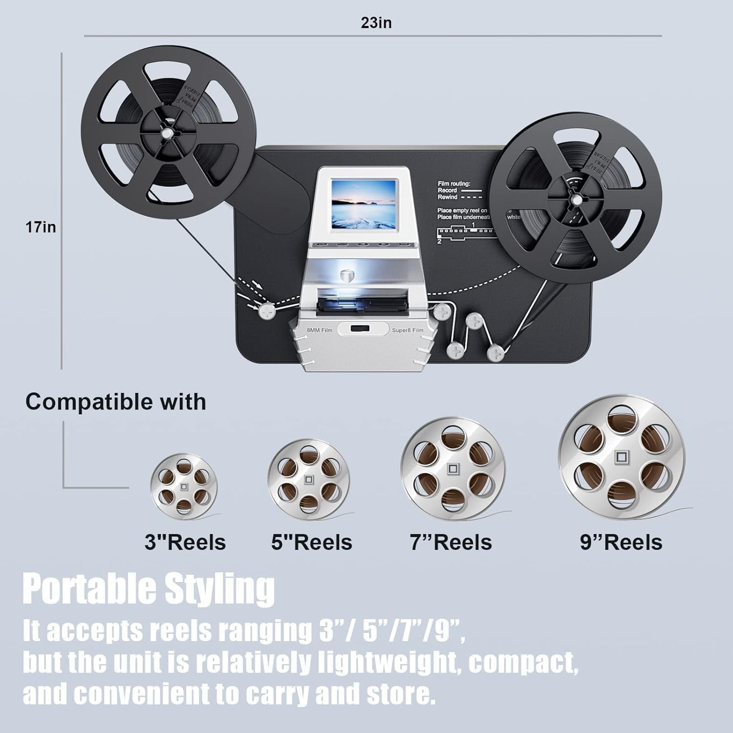 DIGITNOW 8mm & Super 8 Reels to Digital MovieMaker Film Sanner Converter, Pro Film Digitizer Machine with 2.4″ LCD, Convert 3 inch and 5 inch 8mm Super 8 Film reels into Digital with 32 GB SD Card