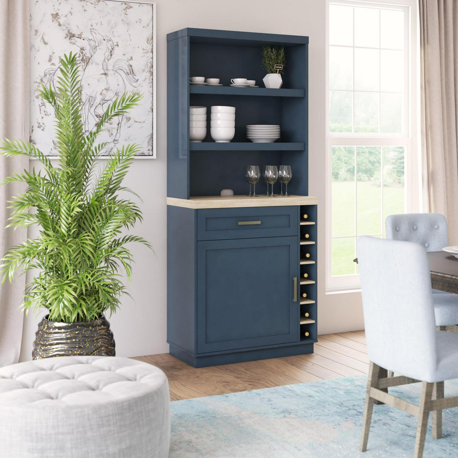 Dining Hutch with Wine Storage and Adjustable Shelving in Fontana Blue