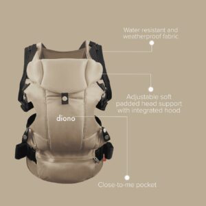 Diono Carus Essentials 3-in-1 Baby Carrier, Ergonomic Front and Back Carry for Newborn to Toddler up to 33lbs, Sand