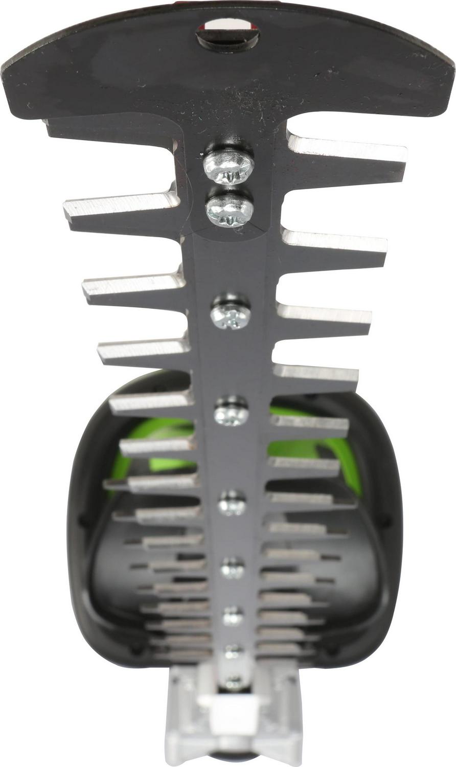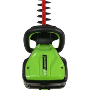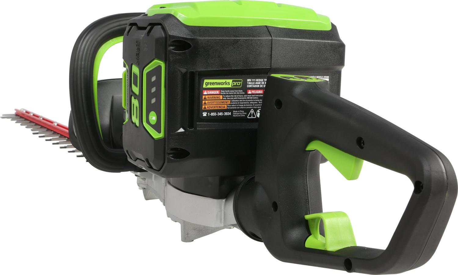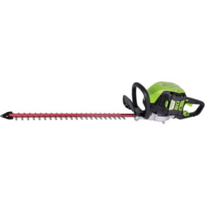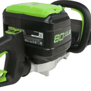 Greenworks Pro 80V System offers a range of commercial grade tools for the professionals and those who just want more power. This 26-inch cordless hedge trimmer features a rotating rear handle. Light weight and easier to use, it has a variable speed trigger for power on demand, 3/4″ cut capacity and dual action blades for reduced vibration. Designed for durability and heavy duty jobs, it features a brushless motor that delivers the power and performance of a 26cc gas engine. With an extra battery on hand, you can now rip through weeds in neighborhood without the hassle of gas. Compatible batteries currently include a 2ah (model GBA80200) and 4ah (model GBA80400) battery and rapid charger (model GCH8040). The 2ah battery charges within 30 minutes so you can get back to work and finish that job. The 4ah battery charges within 1 hour. Voltage: 80V.